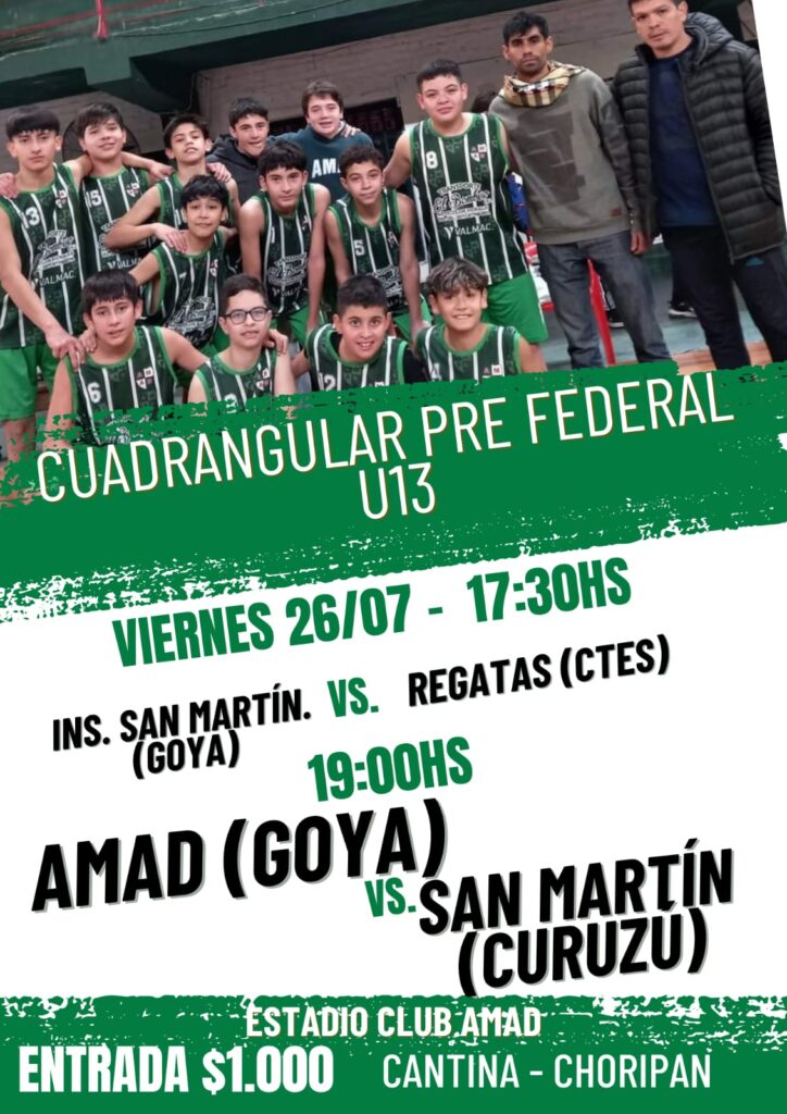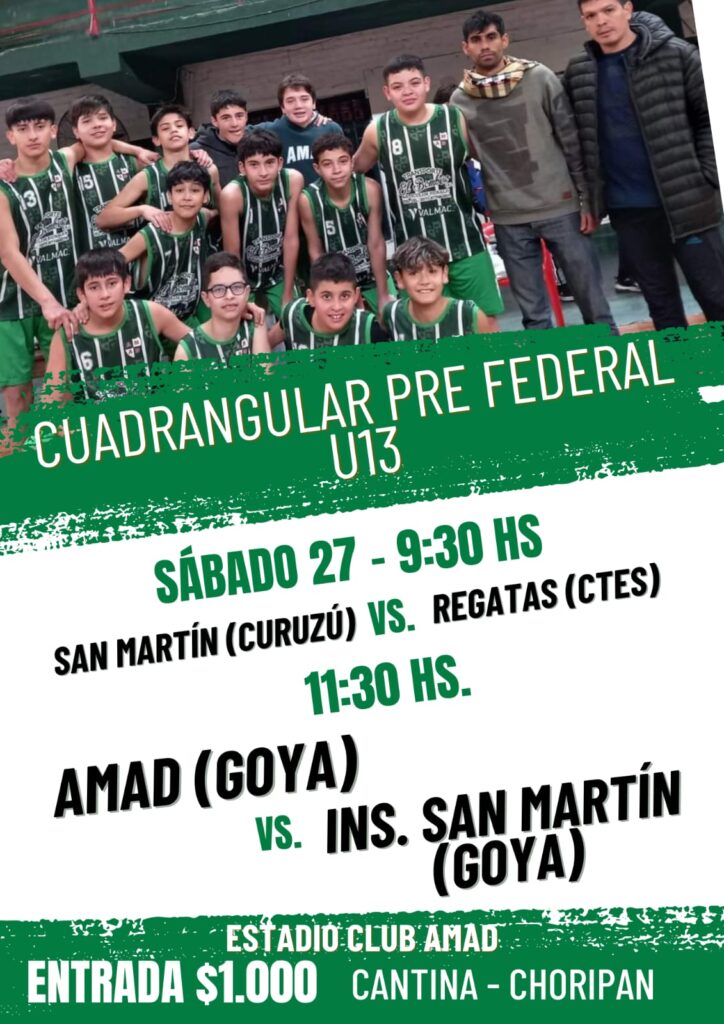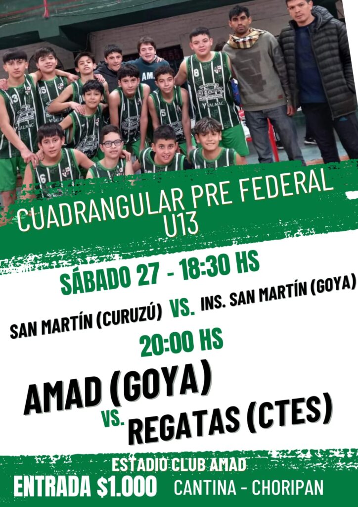 Por su parte el masculino en esa misma Categoría U13 en el estadio “Juan Antonio Faturo” de AMAD desde este viernes y hasta el sábado se desarrollará el cuadrangular Pre Federal en la instancia semifinal, con la presencia de los clubes Instituto San Martín y AMAD de Goya; Regatas de Corrientes y San Martín de Curuzú Cuatiá.