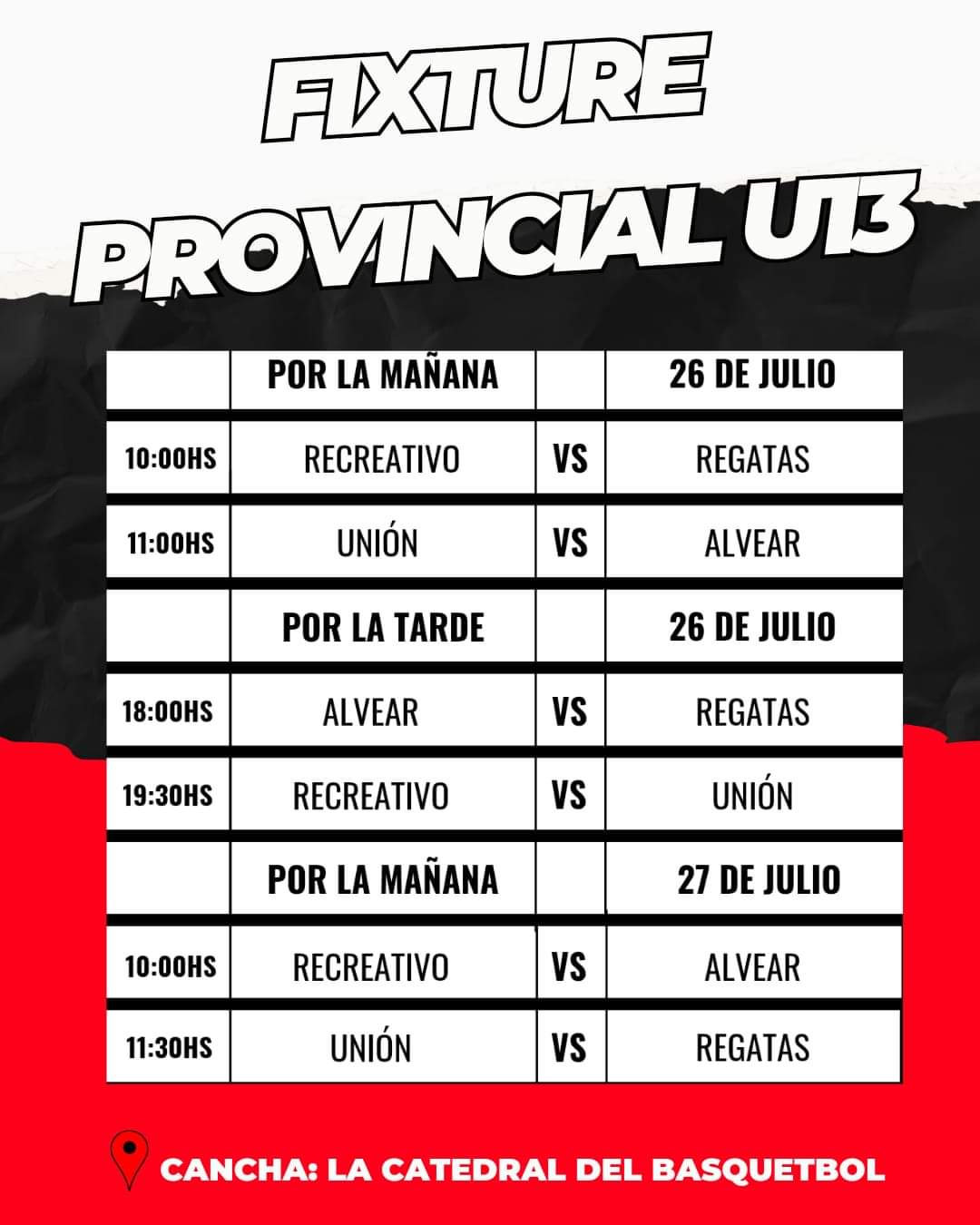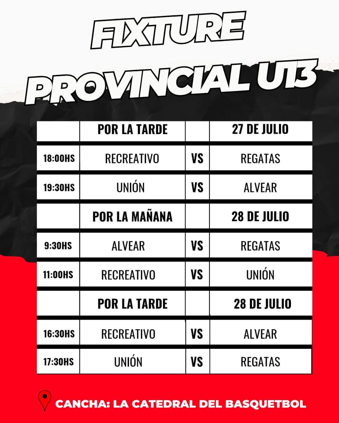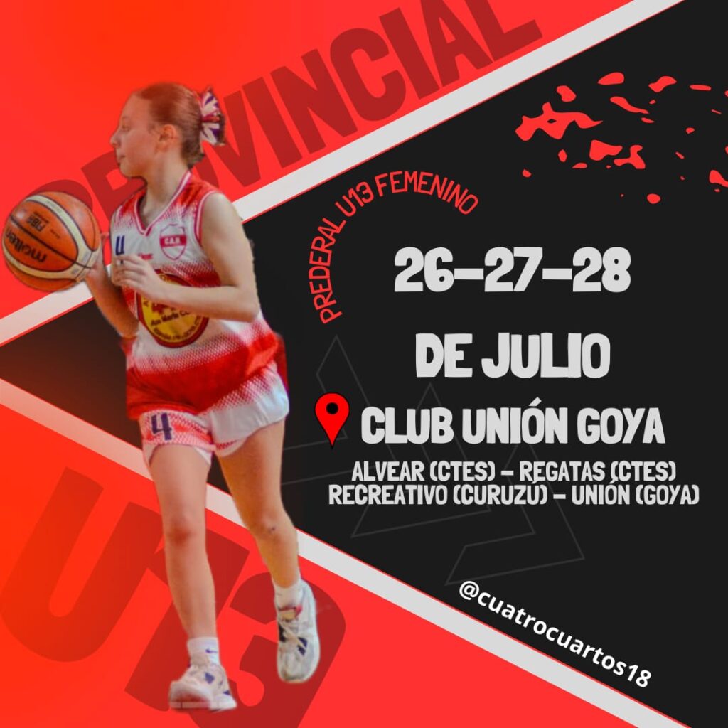 El básquet femenino en la Categoría U13 se jugarán los partidos desde el viernes al domingo con la participación de los clubes Regatas y Alvear de Corrientes, Recreativo de Curuzú Cuatiá y Unión de Goya, en el estadio del club anfitrión “La Catedral del Basquetbol”.