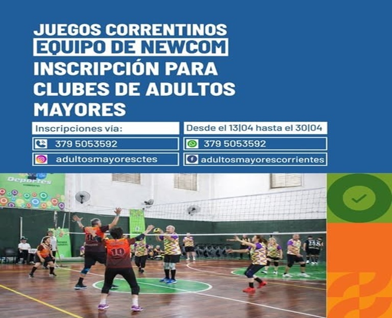 Bajo la organización del Gobierno provincial, la Secretaría de Deportes y el Área de Adultos Mayores, dependientes del Ministerio de Desarrollo Social, invitan a los equipos de newcom interesados a inscribirse en los Juegos Correntinos 2026. De esa manera, los diferentes equipos de adultos mayores lo pueden hacer desde este lunes 13 y hasta el 30 de abril.