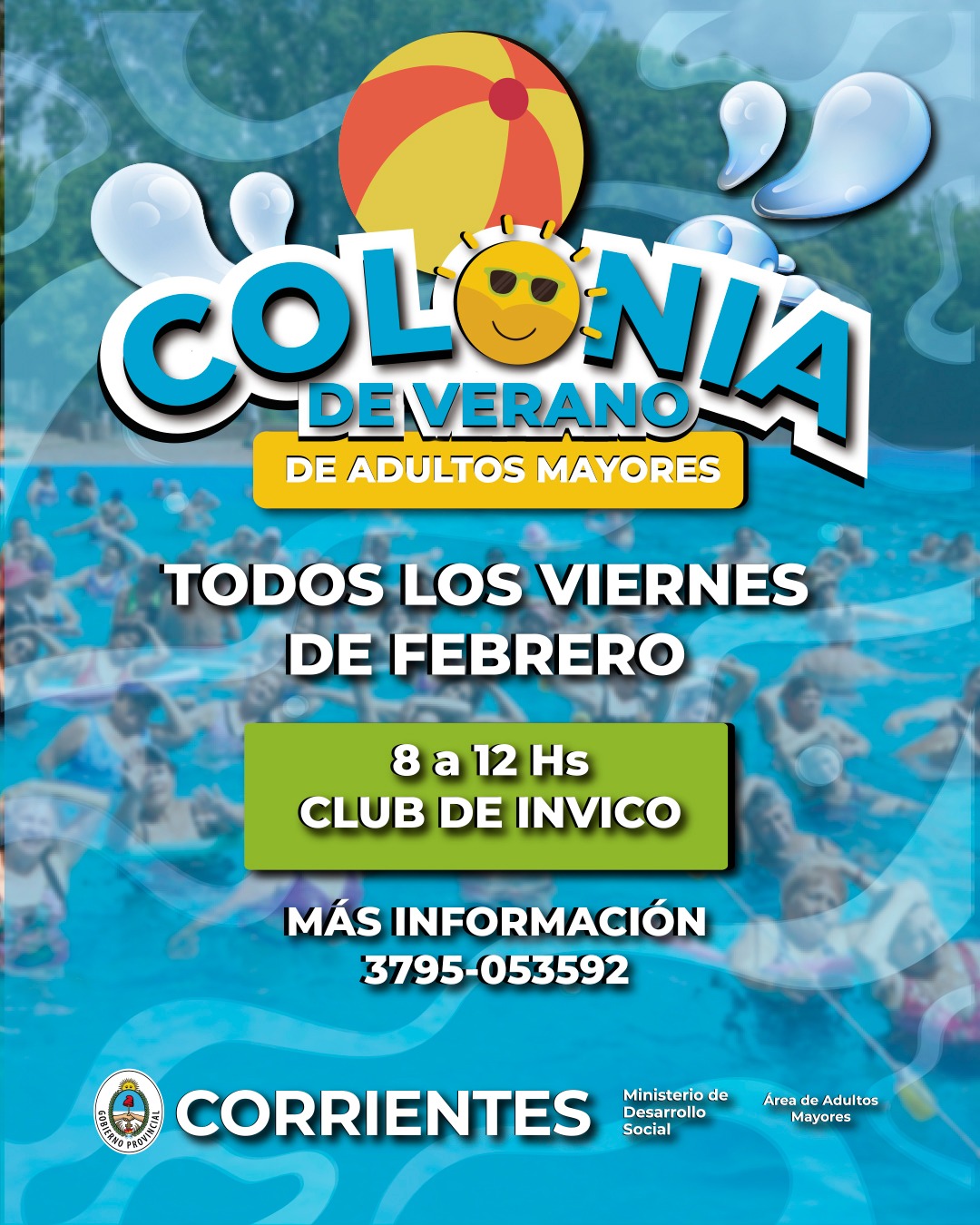 La Colonia de Vacaciones es una de las actividades pensadas en el marco de las políticas de recreación y esparcimiento y es totalmente gratuita, y será desarrollada todos los días viernes del mes de febrero, desde las 08.30 a 12, brindando a los Adultos mayores la posibilidad de disfrutar de la pileta y de otras actividades recreativas (bailes, juegos, gimnasia pasiva y acuática) en su tiempo libre, en el Club de INVICO del Barrio Quintana.