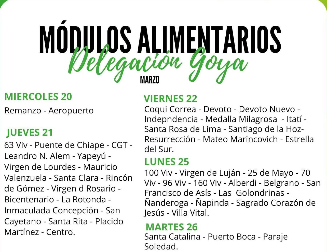 La Delegación Goya del Ministerio de Desarrollo Social, informo que corresponden al mes de marzo destinado a los beneficiarios de los distintos barrios de la ciudad.