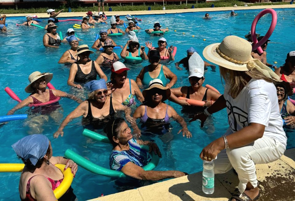 En la oportunidad, se desarrollaron diversas actividades recreativas, juegos pasivos cognitivos con pelota, dados gigantes y en la pileta acuagym con flota flota.