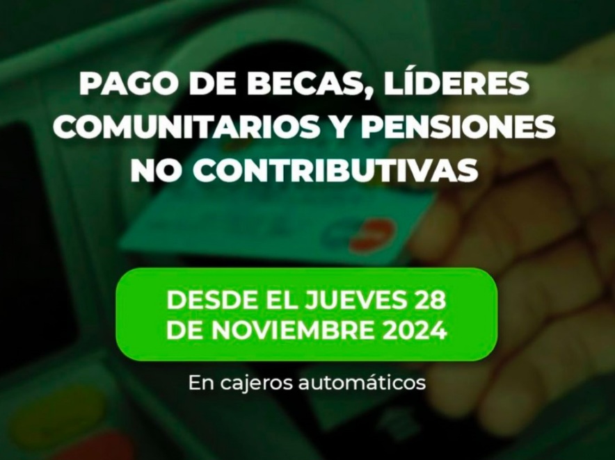 El Ministerio de Desarrollo Social, informa a beneficiarios que desde este jueves 28 de noviembre estará disponible el pago de becas, pensiones no contributivas y líderes comunitarios dependientes de este organismo.