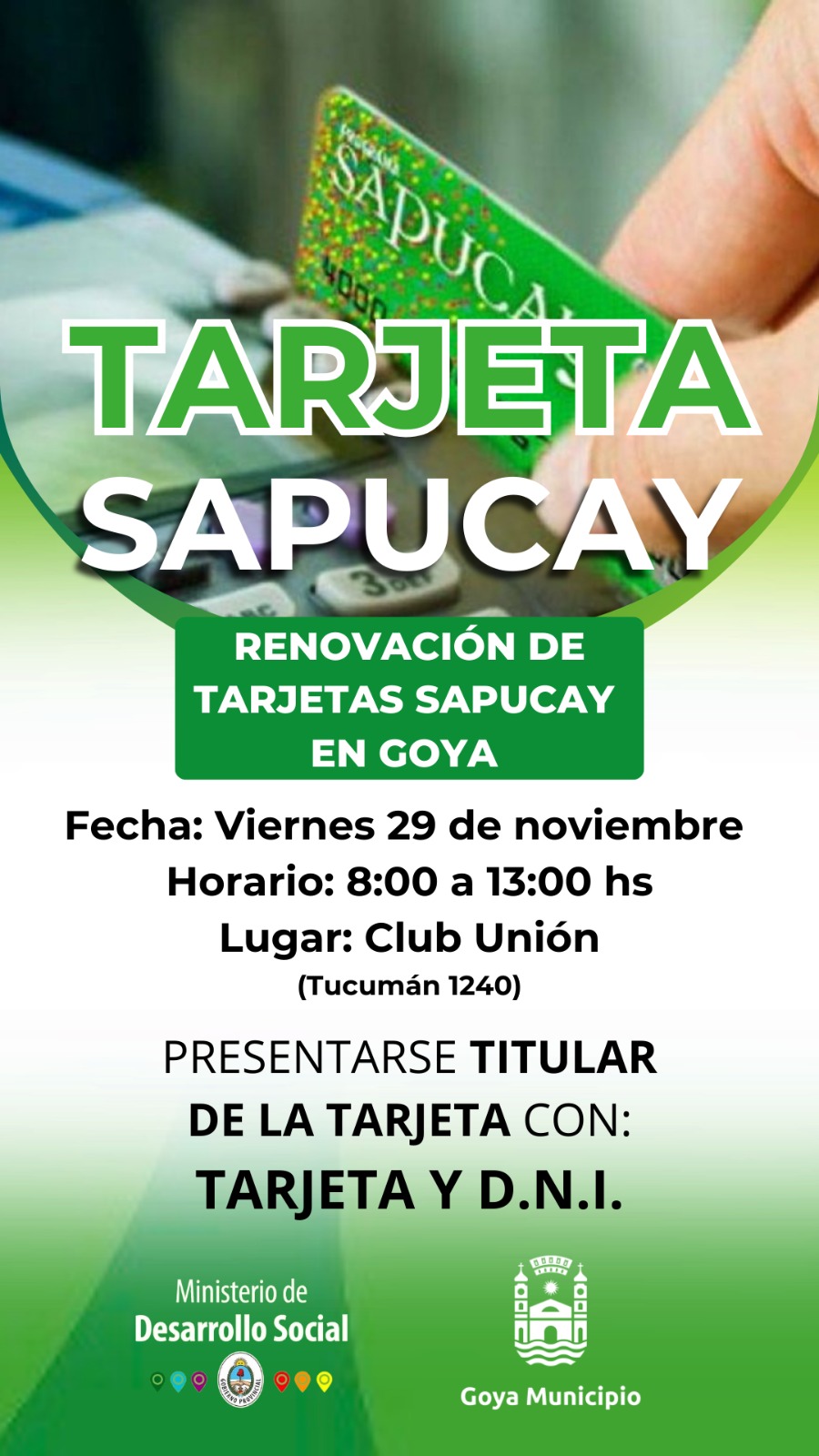 Con la colaboración de la Municipalidad de Goya y el personal técnico del Ministerio de Desarrollo Social, nuevamente este viernes estarán realizando el trámite de renovación de la Tarjeta Sapucay.