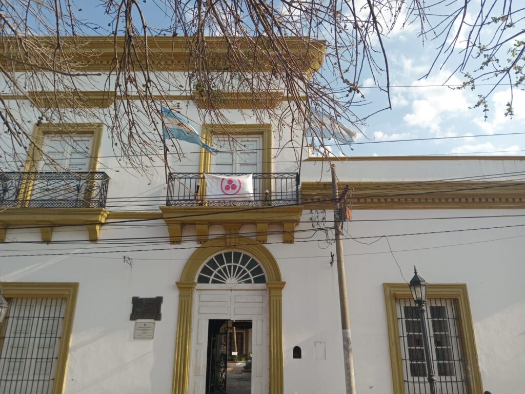 Como símbolo de adhesión se colocó la Bandera de la Paz en los balcones de la Casa de la Cultura