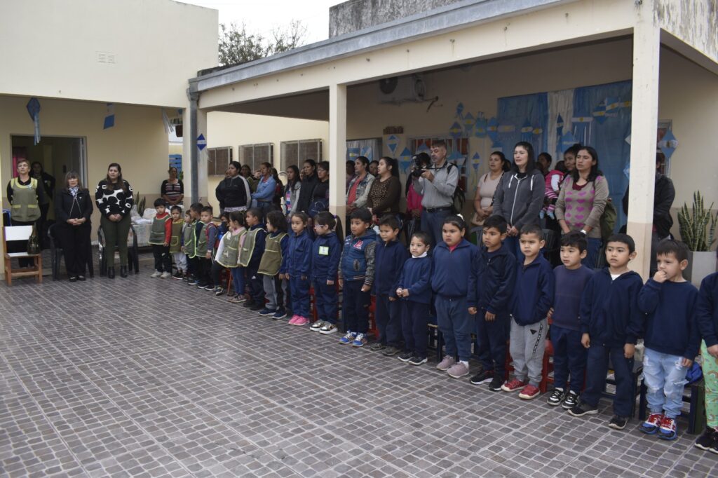 El acto estuvo encabezado por la Secretaria de Educación del municipio, Sonia Espina, la supervisora del Nivel Inicial, Bettina Tones, la directora del establecimiento, docentes y alumnitos.