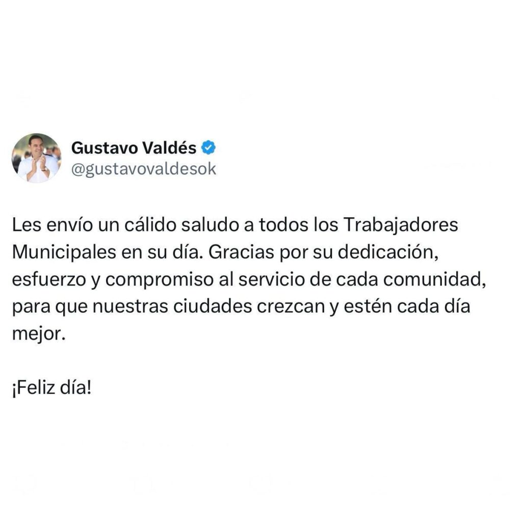 En el marco del Día del Trabajador Municipal, el gobernador Gustavo Valdés envió un cálido saludo a todos los empleados de los municipios correntinos. A través de sus redes sociales, el mandatario agradeció la dedicación, el esfuerzo y el compromiso de quienes trabajan diariamente al servicio de cada comunidad.