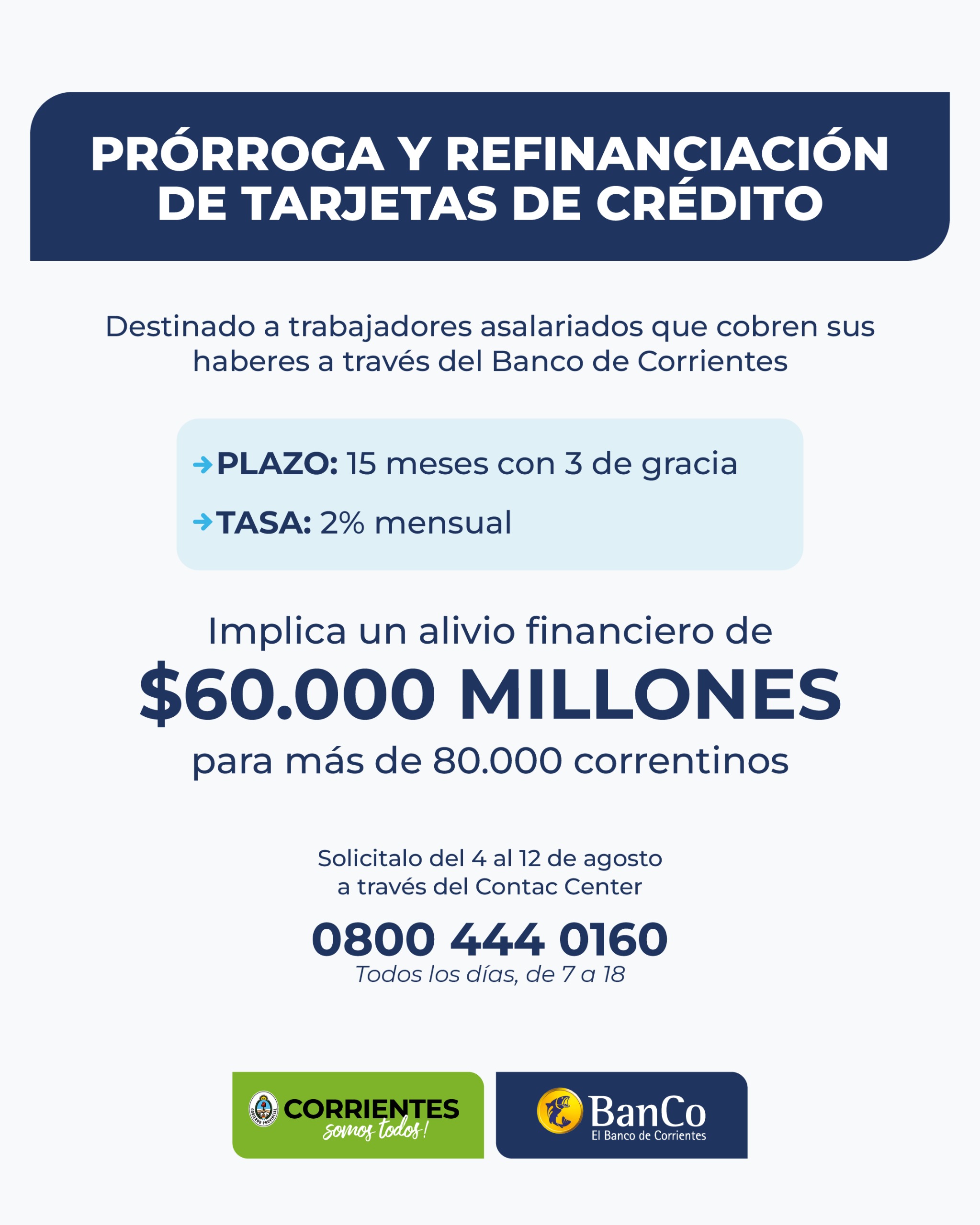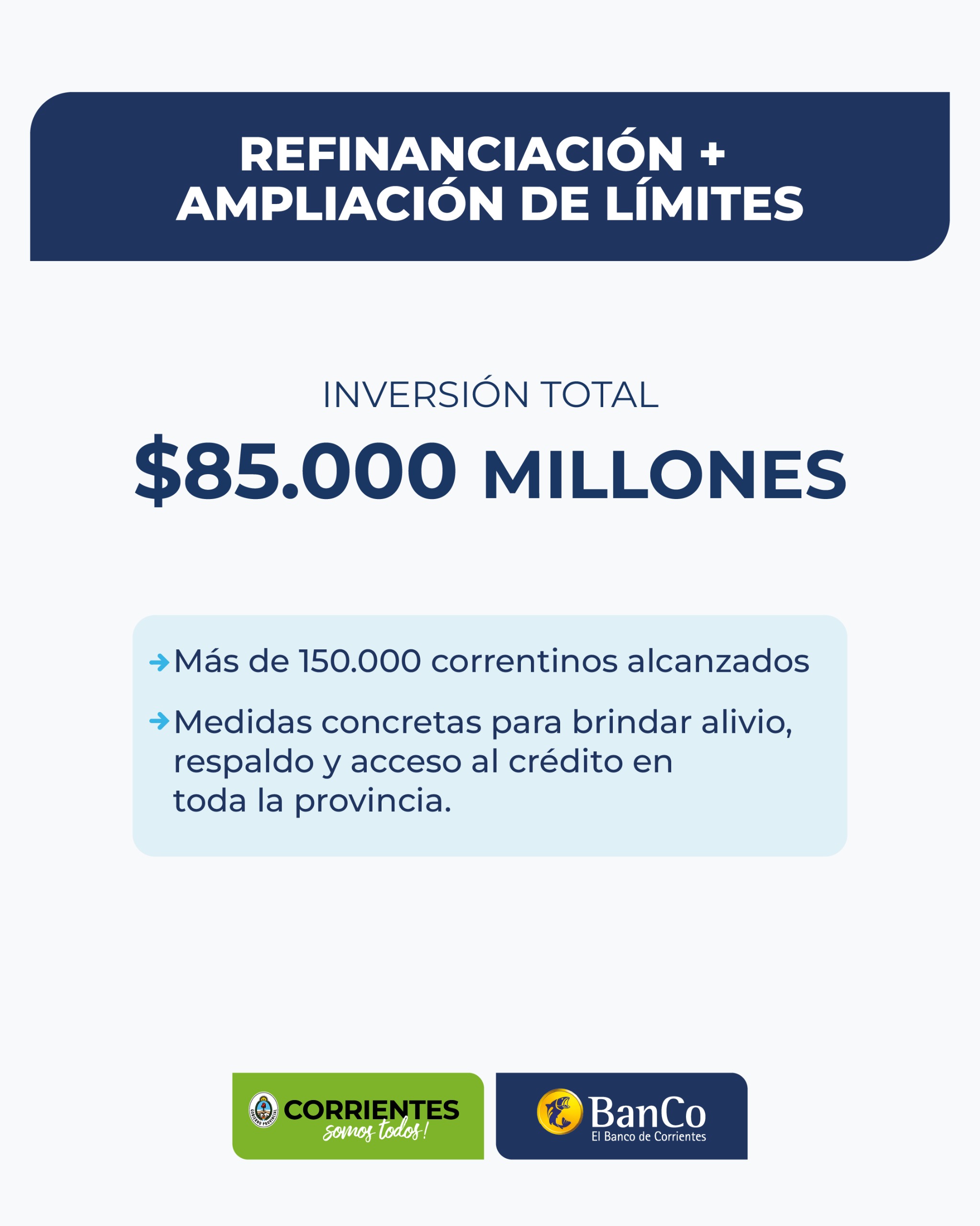 En conjunto, ambas políticas sumarían $85 mil millones volcados al mercado, con impacto directo en más de 150 mil clientes del Banco de Corrientes.