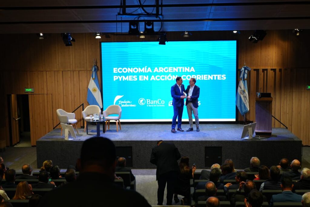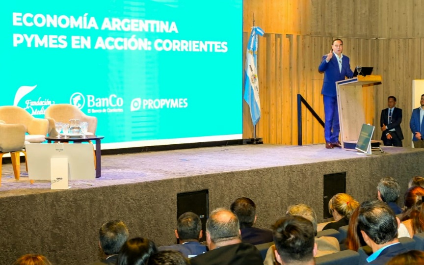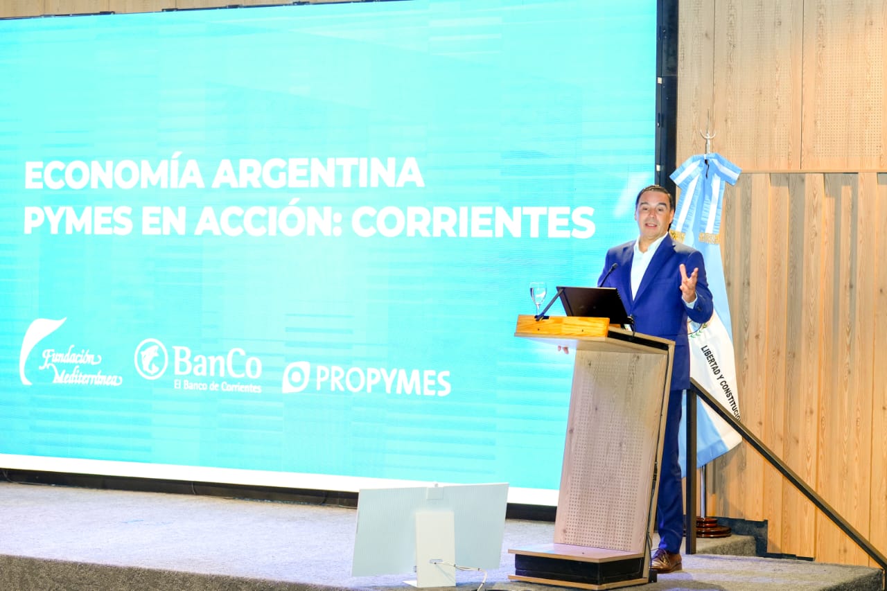 El gobernador Gustavo Valdés encabezó este miércoles el evento “Economía Argentina – PyMEs en Acción: Corrientes”, impulsado y organizado por el Banco de Corrientes junto a la Fundación Mediterránea y el Instituto de Estudios sobre la Realidad Argentina y Latinoamericana (IERAL), orientado a empresarios, emprendedores, profesionales y público interesado en el fortalecimiento de dicho sector. En ese contexto, que tuvo lugar en el Auditorio “Julián Zini” del Banco, el primer Mandatario pidió escuchar a las PyMES, porque son quienes generan trabajo privado, y “nosotros desde un Estado presente debemos apoyarlas para que puedan competir”.