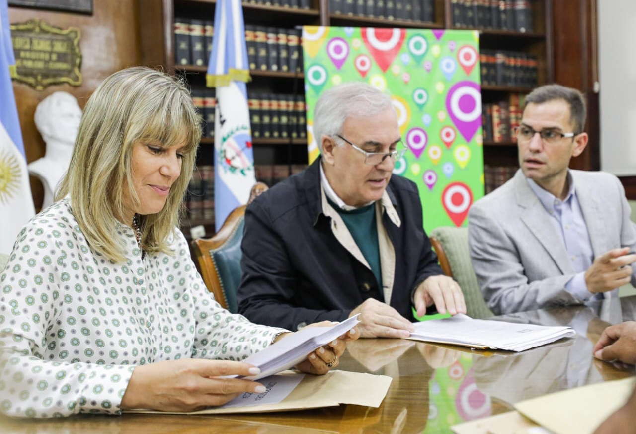 La ocasión tuvo lugar este jueves a las 9,30 en el Salón de Acuerdos del Ministerio de Hacienda, encabezada por los ministros de Producción, Claudio Anselmo y de Industria, Mariel Gabur; el consejero principal de la Subsecretaría de Hacienda, Juan José Affur y el coordinador de Herramientas Financieras Provinciales, Ricardo Charpín.