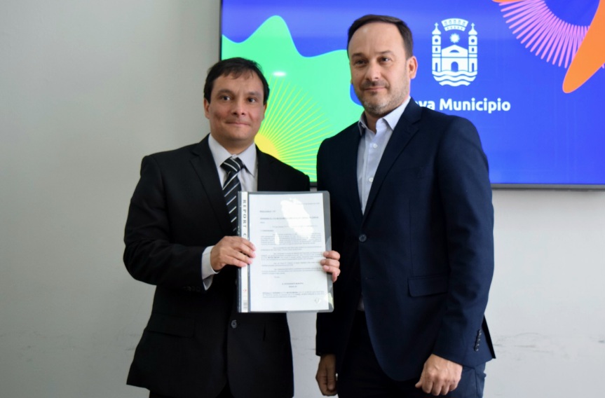El intendente municipal Mariano Hormaechea tomó juramento al nuevo funcionario, en la mañana del lunes en el Salón de Acuerdos del edificio municipal.