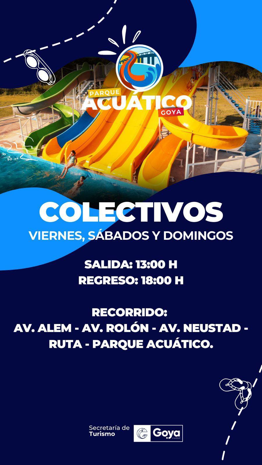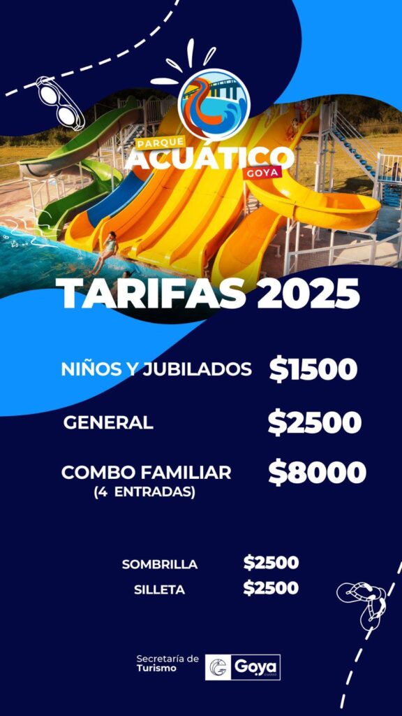 Para disfrutar de la temporada estival el espacio ubicado a la vera del Río Santa Lucia, el Parque Acuático Goya ofrece el servicio ambientado para la utilización de los lugares para acampar, estar, y los juegos acuáticos incorporados a las piletas del complejo municipal