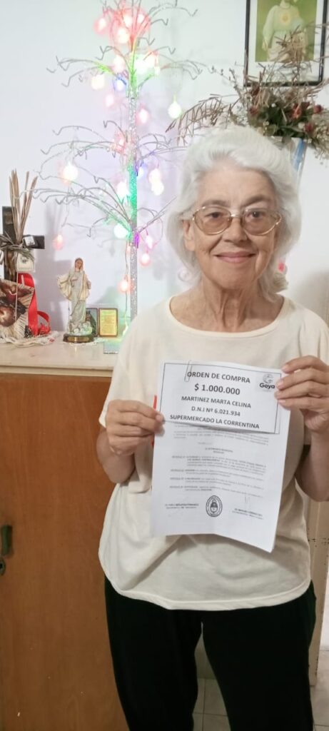 Asimismo, el quinto premio fue para Marta Celina Martínez, quien recibió una orden de compra por 1.000.000 de pesos para utilizar en el Supermercado “La Correntina”.