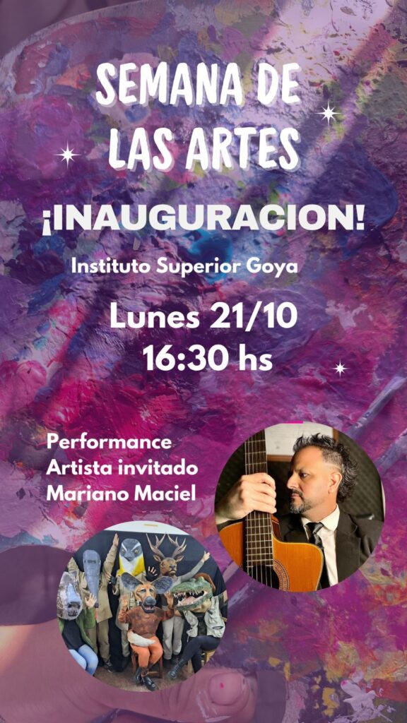 “Después de la actuación de Maciel, los estudiantes de 2º año de la cátedra de escultura y de 4º año harán una puesta en escena, -añadieron- con máscaras realizadas por ellos, de la fauna autóctona, con cartapesta, es una técnica que consiste en aplicar varias capas de papel empapado en una mezcla de cola y agua sobre una superficie para crear una forma tridimensional. Esta técnica permite crear objetos de gran tamaño y resistencia hecha con material reciclable, diarios, revistas, pondrán a consideración la Maldición del Tupa; agregado sonorización y escenografía, los animales son Yaguareté; Pitogue, Aguará Guazú, Ciervos del pantano, es una exhibición de Arte en Movimiento.”