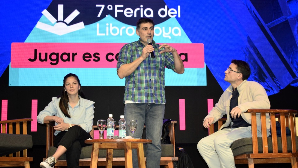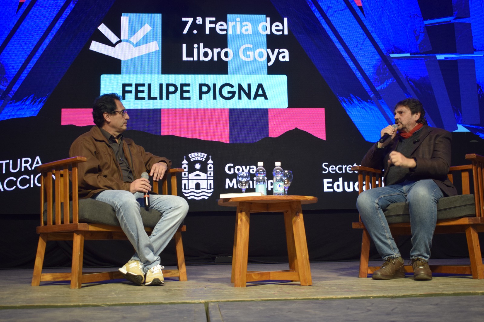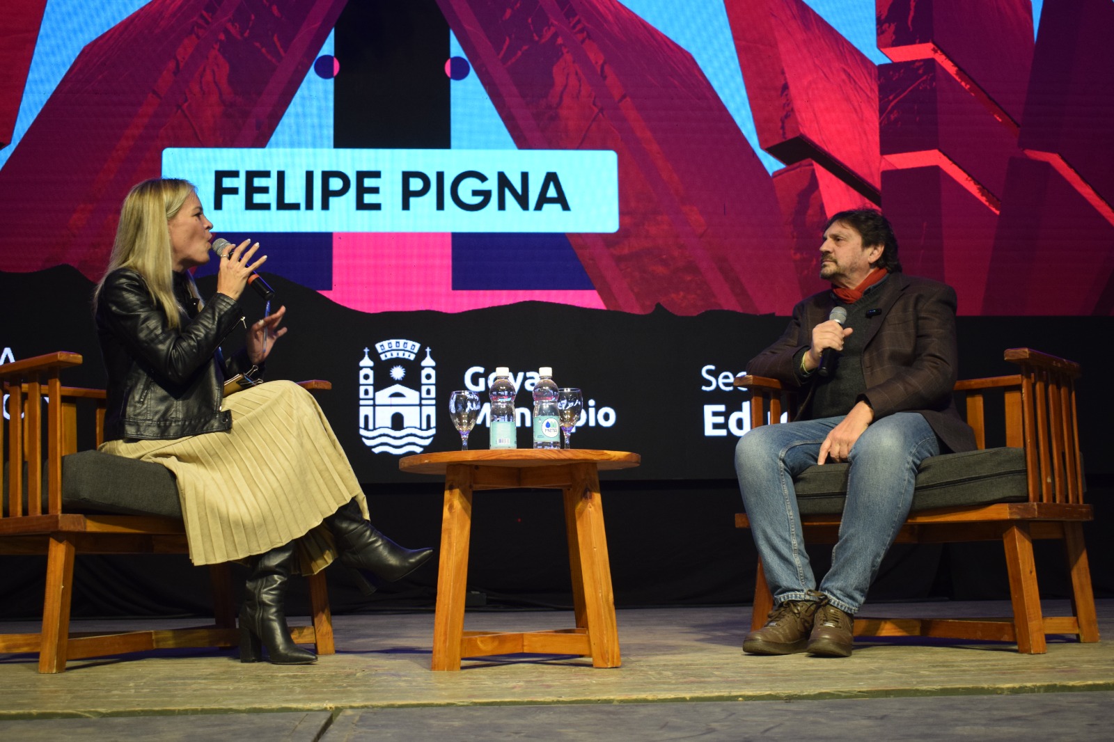 El final de la jornada estuvo dado por la presentación de Felipe Pigna, el historiador animado por Virginia Acosta y Alejandro Medina ayudaron al público conocer más del autor y su primera novela “Conspiración en Londres”