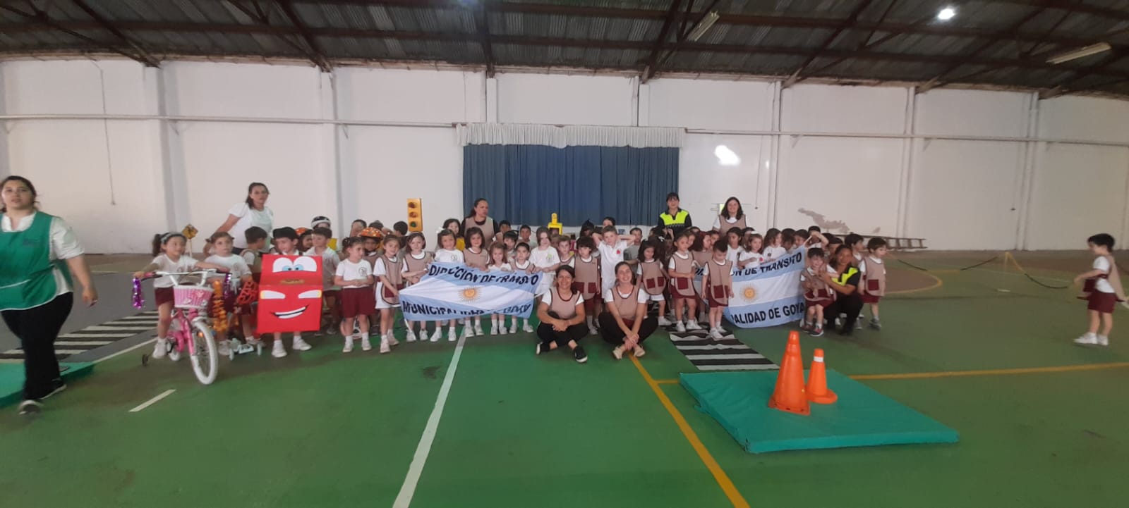 En el espacio de la institución educativa los agentes de tránsito pudieron desplegar su Parque Temático para usar estos elementos con el fin de enseñar y mostrar a los niños las señales de tránsito, la demarcación de la senda peatonal, haciendo hincapié en la necesidad de respetar las normas correspondientes. Así, los jardineros protagonizaron el momento y aprendieron el uso correcto de los elementos de seguridad y otras nociones acordes a su nivel.