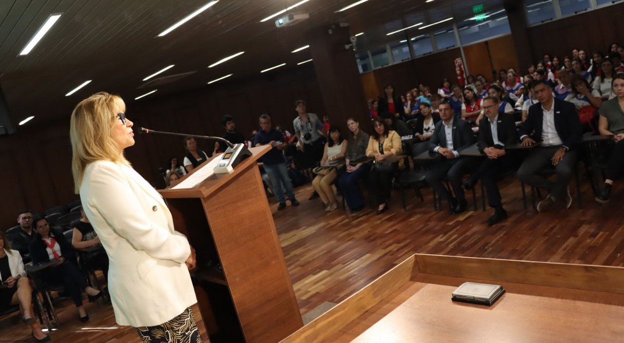 La ministra de Educación Práxedes López encabezó esta mañana la presentación del desarrollo curricular “Narrativas pedagógicas. Trama y texto que acompañan la práctica docente” y el lanzamiento de la segunda cohorte del trayecto formativo para docentes de salas de 3; 4 y 5 años del Programa Infancia, producto de un convenio del Ministerio de Educación con la Fundación Pérez Companc y el Conicet. Este doble acto tuvo lugar en el salón Auditorio de la Facultad de Derecho de la Unne.