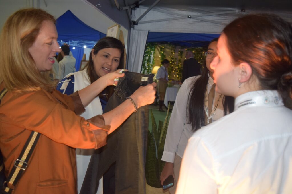 Las funcionarias junto a los directivos del instituto recorrieron el espacio creado para la muestra en la sede educativa, la Expo Empresas 2025.