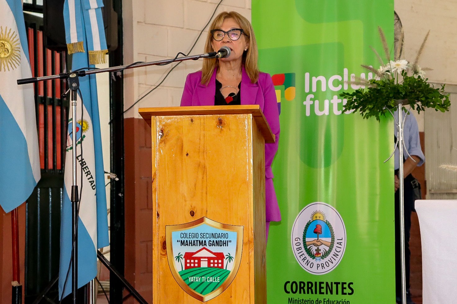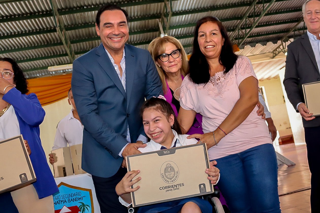 Continuando con su agenda de actividades en el interior provincial y con el firme propósito de fortalecer la educación pública, el gobernador Gustavo Valdés encabezó este miércoles en la localidad de Yatay Ti Calle, el acto de inauguración de refacciones y ampliaciones y entrega de más de 100 notebooks de “Incluir Futuro” en el Colegio Secundario Mahatma Gandhi.
