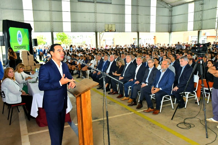 Al tomar la palabra, el gobernador Valdés dio cuenta, en un primer momento, que los años de pandemia “nos interpelaron para ver cómo hacíamos para modernizar el contenido, la forma, la metodología, y la modernización de la educación”. Por ello, “comenzamos a desarrollar plataformas educativas, contenidos educativos, a través de Educa Play y Corrientes Play”, recordó el mismo, para “saber qué somos, dónde estamos, cuáles son nuestros clubes, cuáles son nuestras comidas, nuestro Chamamé y nuestro carnaval”.
