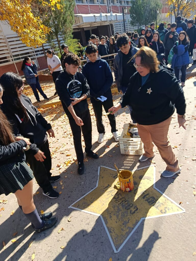 En el colegio secundario “Juan Eusebio Torrent”, además de la charla se realizó una actividad en la calle, en conjunto estudiantes e inspectores. El mismo consistió en hacer concientización. El taller se concretó con los estudiantes que cursan los últimos años, se sortearon cascos, y como cierre de la actividad, junto a la Fundación se pintó la Estrella Amarilla en la dársena, recordando a una persona fallecida en un siniestro vial.