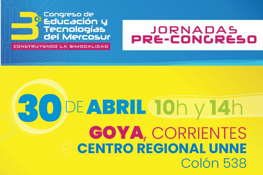 En el marco de la tercera edición del Congreso de Educación y Tecnologías del Mercosur – Construyendo la Bimodalidad, el miércoles 30 de abril se realizarán en Goya las Jornadas Pre-Congreso, orientadas a docentes, gestores e investigadores.