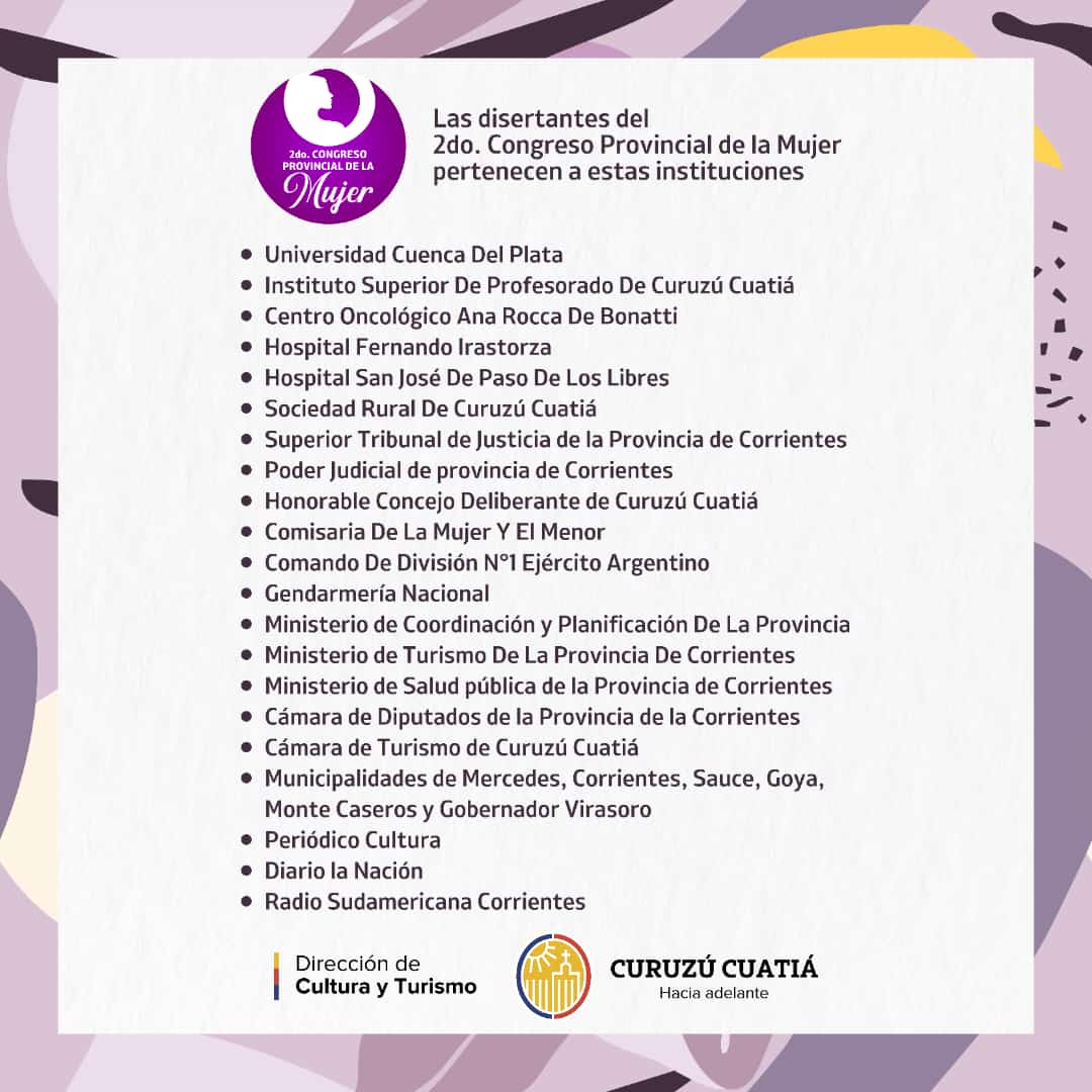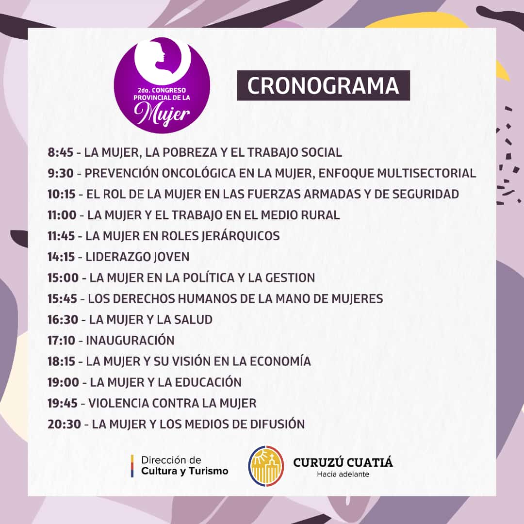 El sábado 13 se realizará el II Congreso de Mujeres en Curuzú Cuatiá. La sede del encuentro, que iniciará a las 8,30 y se extenderá hasta las 21,30, será el Club Social. En esta oportunidad disertarán mujeres provenientes de doce municipios.