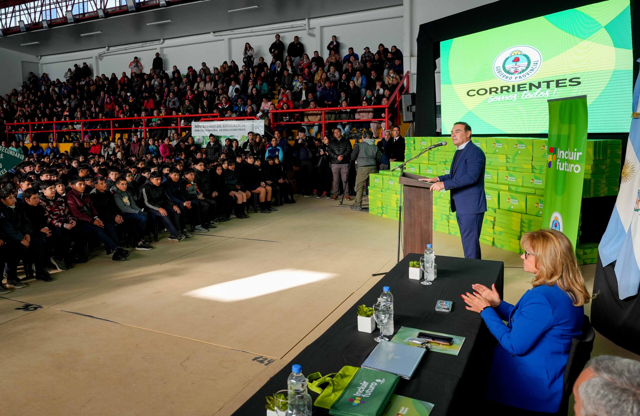 Con el objetivo de reducir la brecha digital y brindar igualdad de oportunidades, el gobernador Gustavo Valdés presidió esta mañana un nuevo acto de entrega de notebooks del programa “Incluir Futuro”, esta vez en el Centro de Educación Física Nº 1, oportunidad en la cual se otorgaron 895 dispositivos digitales a colegios secundarios capitalinos.
