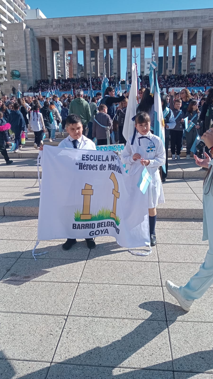 Alumnos pertenecientes a 4to grado de ambos turnos de la Escuela 118 “Héroes de Malvinas”, del barrio Belgrano, realizaron su Promesa de lealtad en la cuna de la Bandera, la ciudad de Rosario.