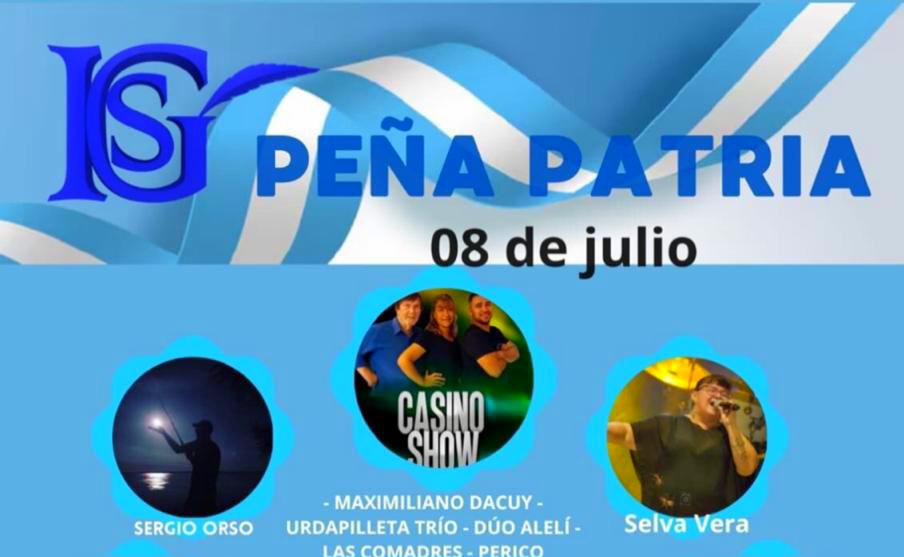 Este martes 8 de julio, se realizará la Peña Patria del Instituto Superior Goya, en el salón del club Huracán (Av. Madariaga 365) a partir de las 21.30 horas.