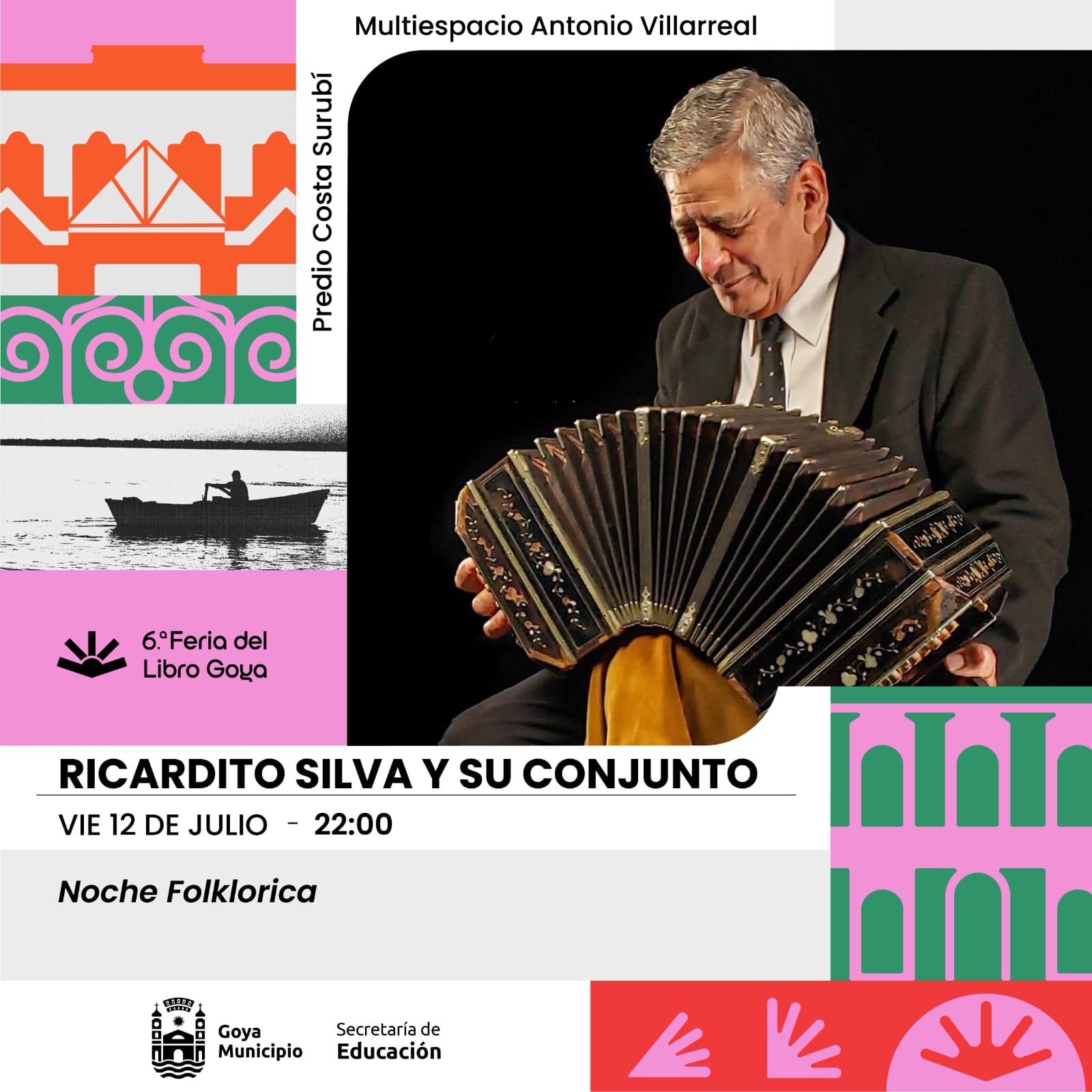 La Feria del Libro de Goya presentar a Ricardito Silva y su Conjunto, quienes ofrecerán una presentación especial a las 22:00 hs. disfruta de una noche llena de música y cultura en un entorno único.