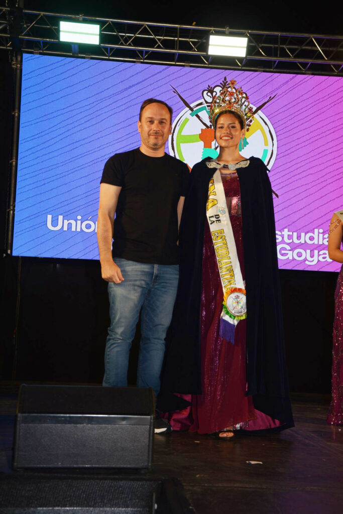 El intendente Mariano Hormaechea, la secretaria de Educación Sonia Espina, el secretario de Desarrollo Humano y Promoción Social Julio Canteros, el director de Juventud Gastón Espinosa y el concejal Sebastián Mazzaro participaron del momento más trascendental de la noche: la coronación de las nuevas majestades de la Estudiantina Goya 2025.
