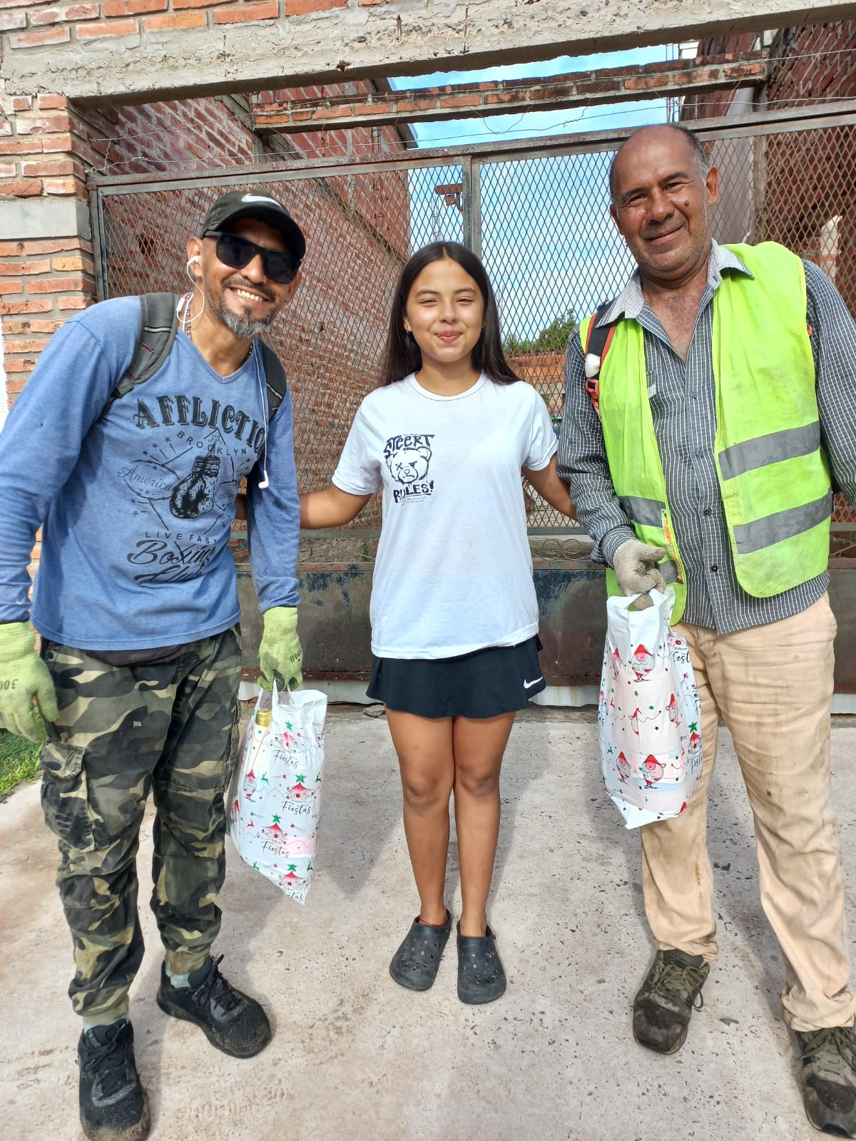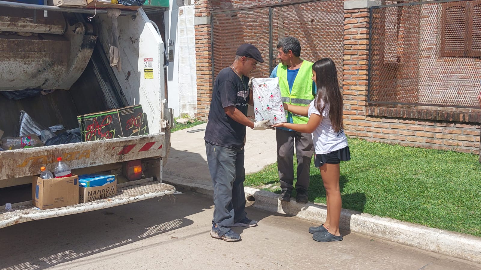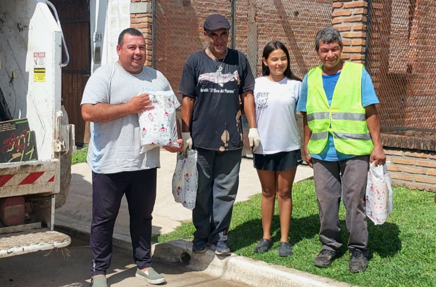 Melanie Espindola vecina del Barrio Mariano Moreno, estableció una tradición, desde hace más de 7 años, reconoce el servicio, la labor de los recolectores de residuos domiciliarios obsequiando a los trabajadores municipales productos navideños, gesto agradecido por los agentes municipales.