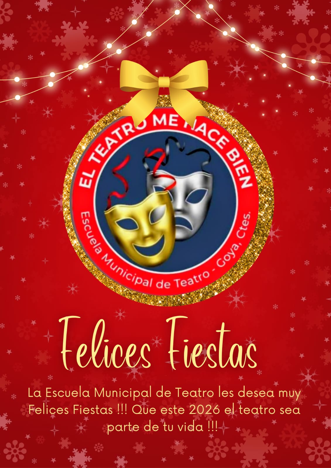 La Escuela Municipal de Teatro en su mensaje destaca: “Felices Fiestas. Que este 2026, el Teatro sea parte de tu vida