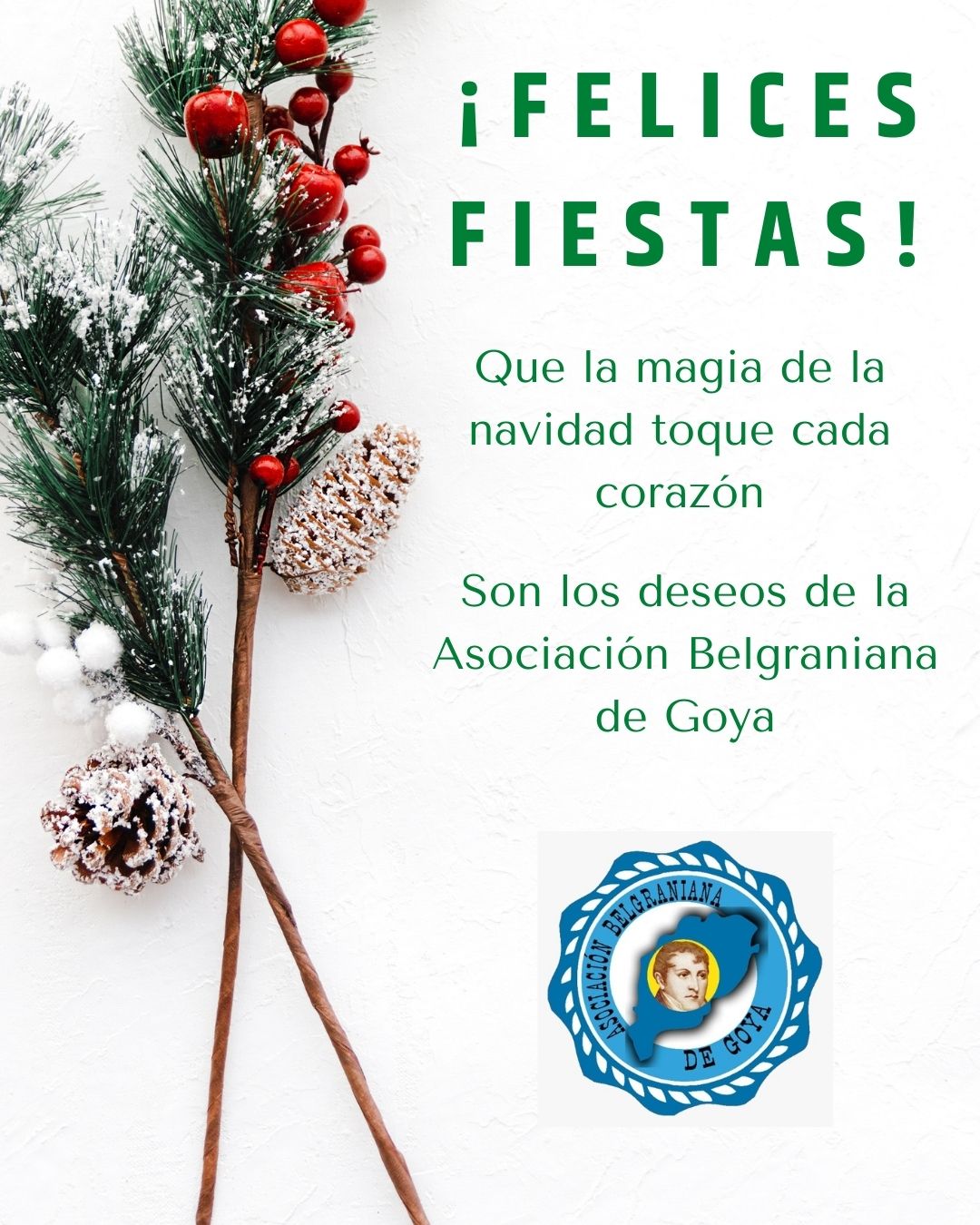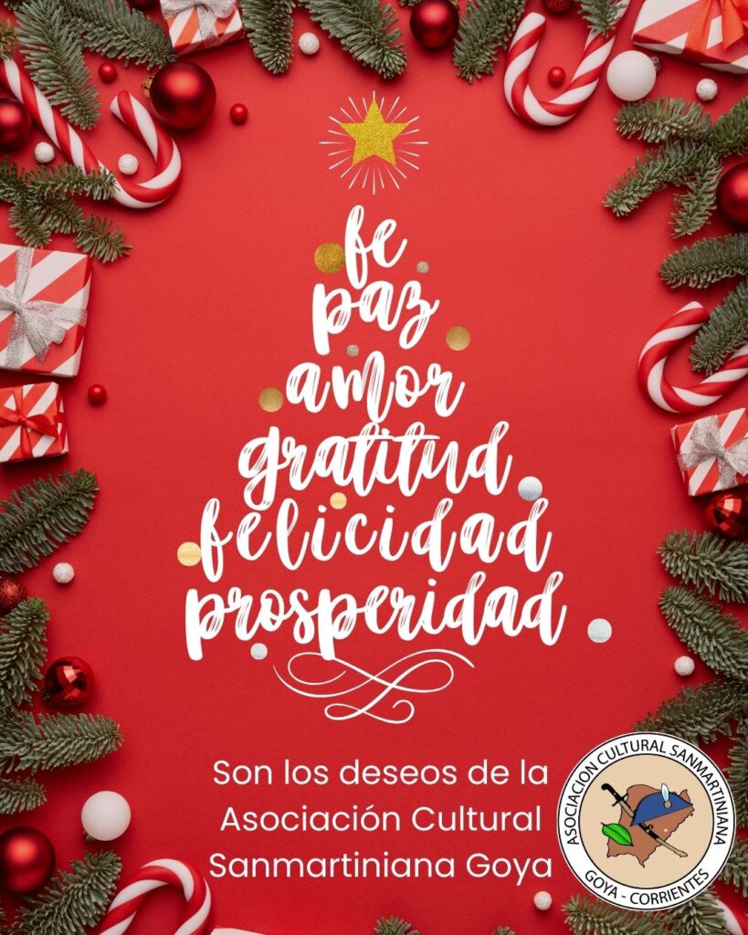 En sus augurios la Asociación Civil, augura: ¡Felices Fiestas! Que la magia de la Navidad toque cada corazón. Son los deseos de la Asociación Belgraniana de Goya