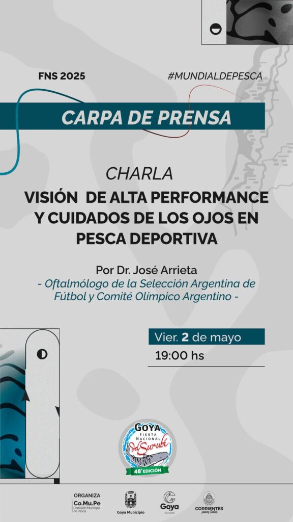 Prestigiosos disertantes hablarán sobre pesca deportiva, la Reserva Isoro, ictiología entre otros. El summum de estos encuentros tendrá a cargo al eminente médico oftalmólogo de la selección argentina de fútbol Y Comité Olímpico Argentino, Dr. José Arrieta el viernes a las 19 horas con la Charla “Visión de alta performance y cuidados de los ojos en Pesca Deportiva”.