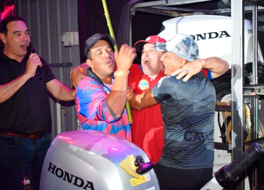 Seguidamente, se procedió a realizar el sorteo, y el primer número que salió fue el del equipo 607 de la Peña “La Soñada” y el número 893 de “Sueño de un Pescador”. Ambos equipos obtuvieron como premio sorpresa un motor Honda 150 HP.