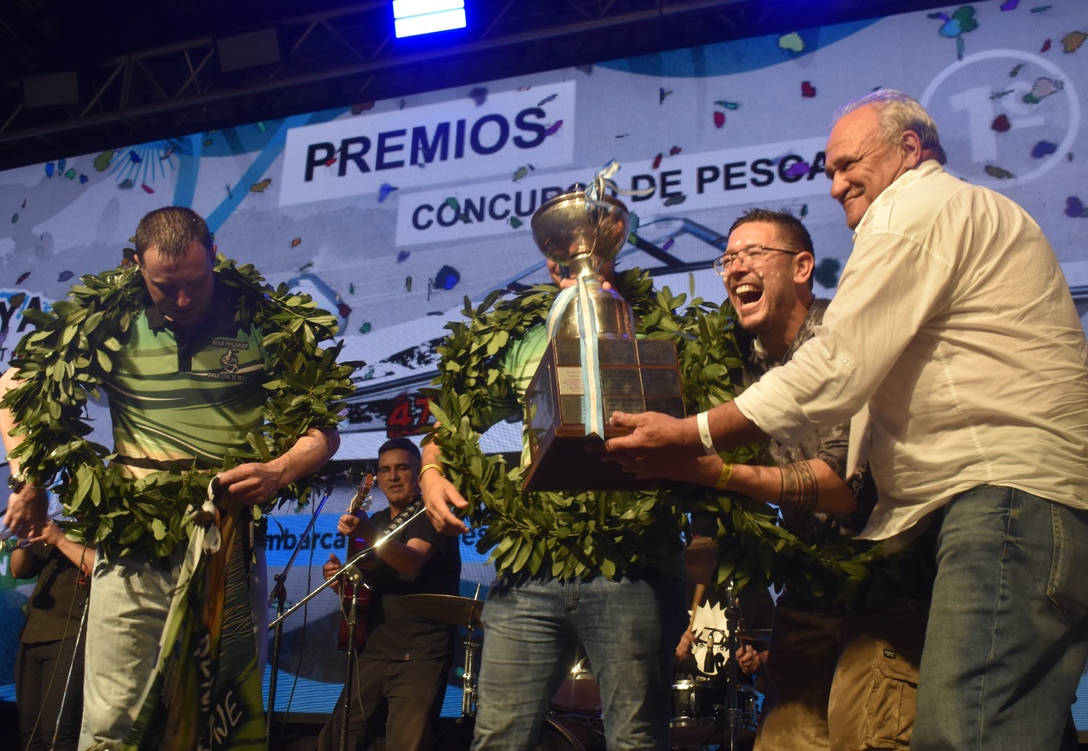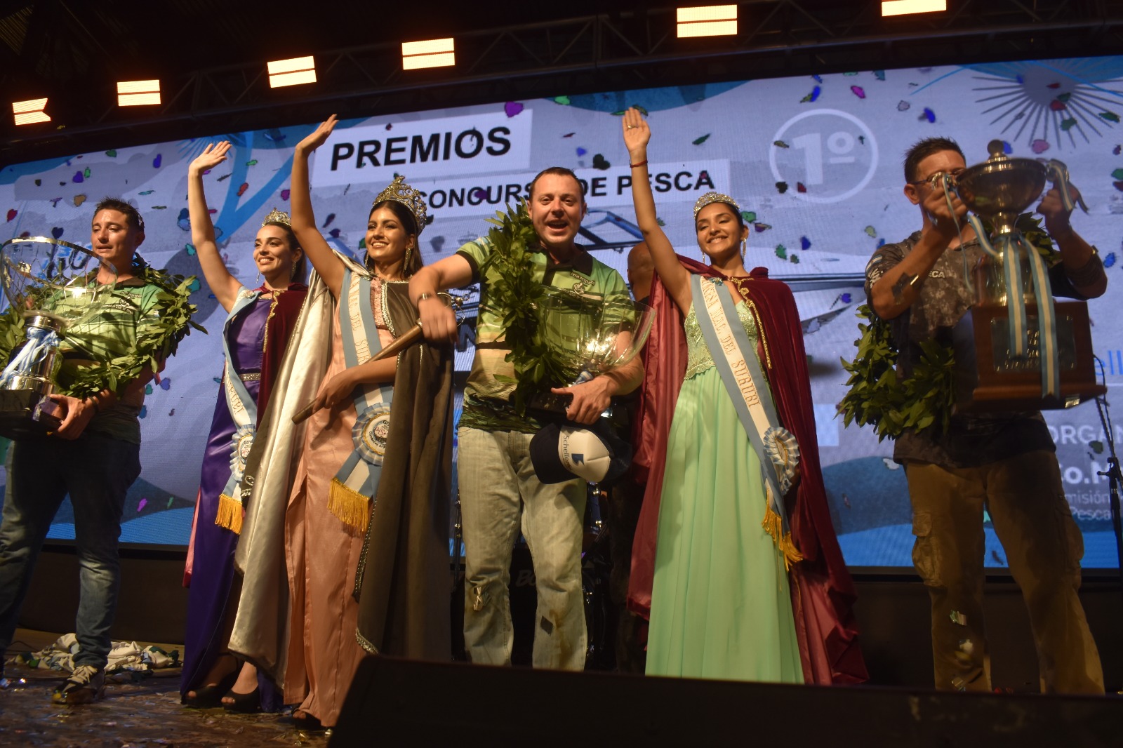 La entrega de premios a ganadores del concurso estuvo a cargo del intendente Mariano Hormaechea, el presidente de COMUPE Pedro Sa´, y el intendente de Ituzaingó Juan Pablo Valdés, quienes subieron al escenario. La emoción y la alegría se desbordaron mientras los pescadores celebraban su conquista entre una lluvia de papelitos y al ritmo de la Canción del Surubí.