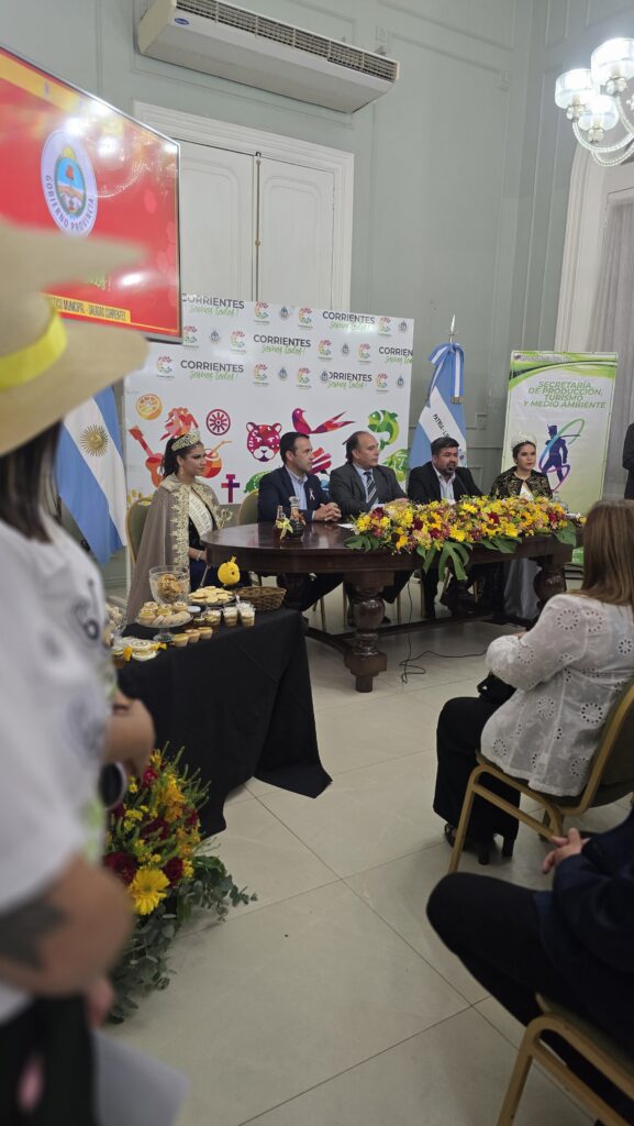 En conferencia de prensa realizada este miércoles en el Salón Verde de Casa de Gobierno dieron a conocer detalles de la tradicional celebración de carácter cultural, productiva y turística. Estuvieron presentes el Intendente de Saladas Noel Gómez, el subsecretario de Promoción e Inversiones Turísticas Augusto Costaguta, el secretario de Producción, Turismo y Medio Ambiente municipal Marcos Ríos, la actual Reina de la Miel y el Desarrollo Emprendedor Ariana Cañete y la Miss Saladas Claudia Ojeda.