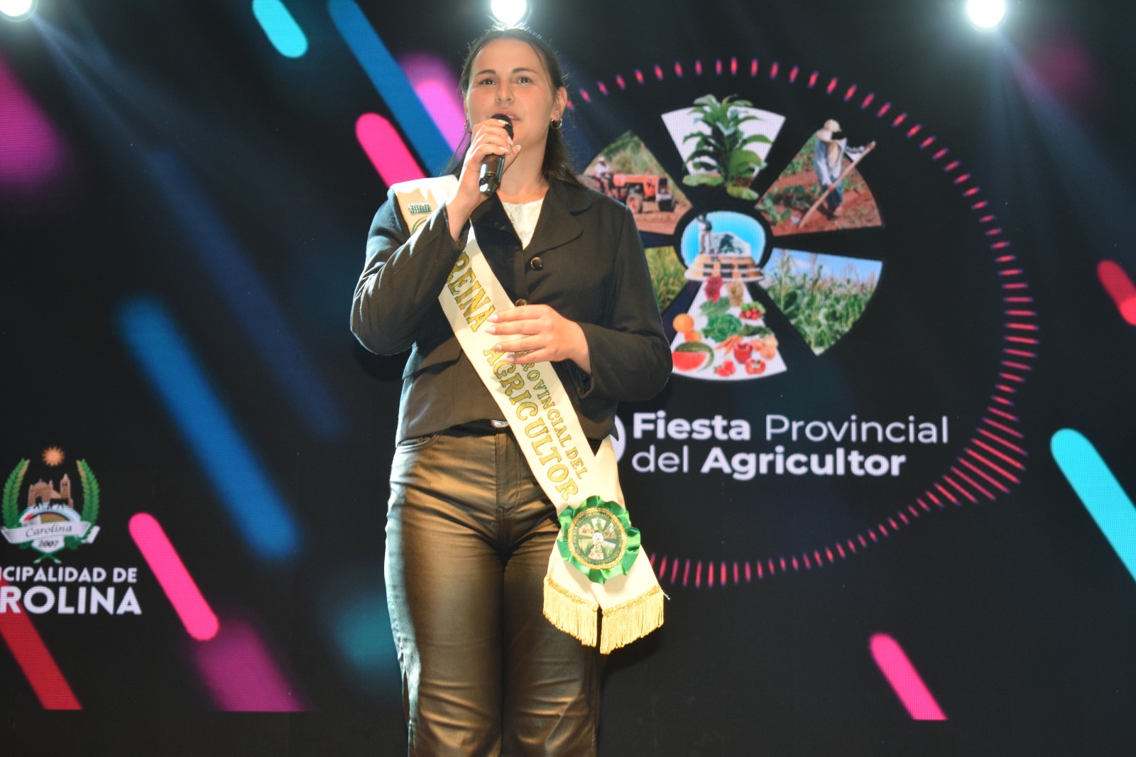 Como cierre de la 40º Fiesta Provincial del Agricultor, Carolina recibió en el Salón del Pedio a los productores, autoridades municipales, provinciales, legisladores provinciales, representantes de las entidades del sector productivo, concejales, a los integrantes de la Comisión de Apoyo, público y a sus flamantes embajadoras elegidas en la noche del sábado, la Reina Milagros Abigail Zone y sus Princesas María Victoria Zini y María Emilia Moreyra en el tradicional almuerzo clausura de la fiesta.