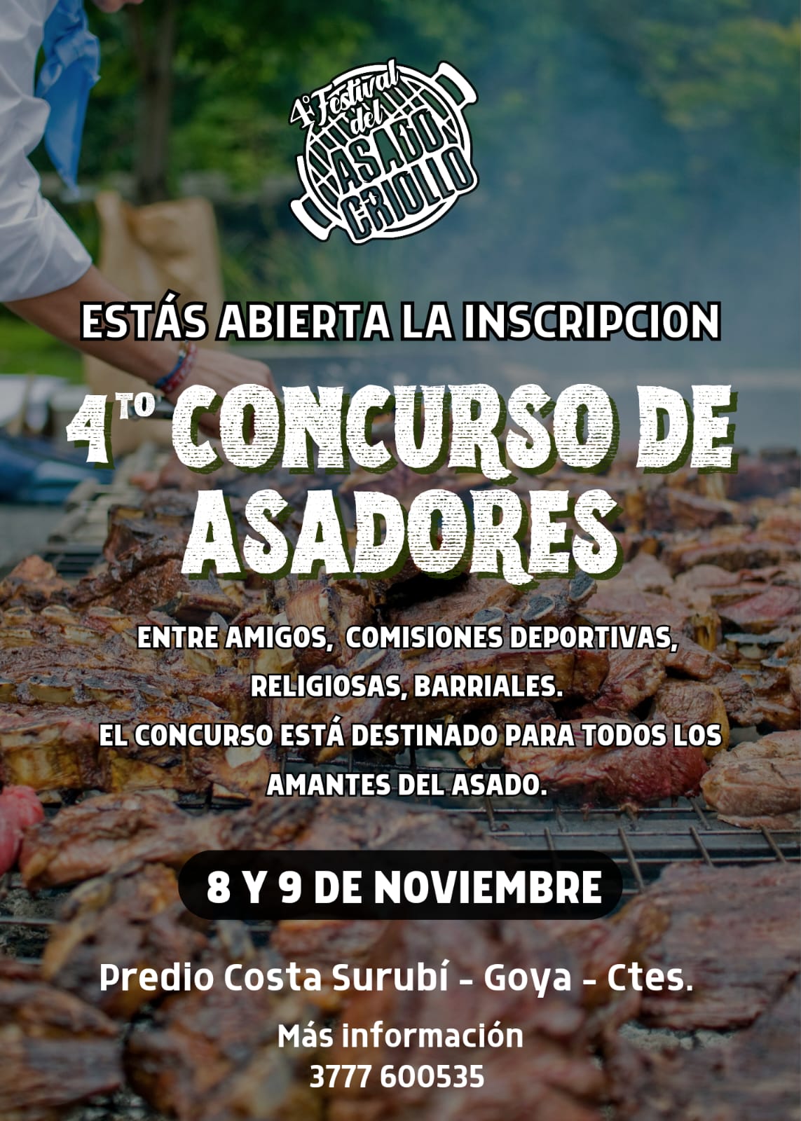 Se abrió la inscripción para participar de la 4ta Edición del Festival de Asado Criollo, y contará con el tradicional Concurso de Asadores, el 8 y 9 de noviembre en el predio Costa Surubí, de Goya.
