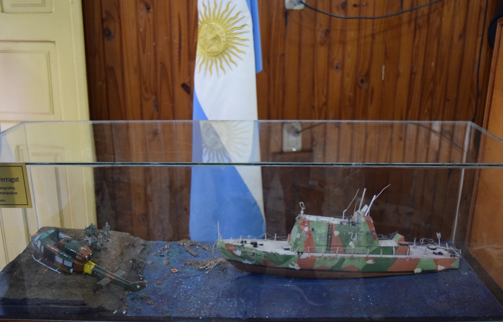 El homenaje continuó con la palabra del modelista naval, profesor Sergio Alejandro Ferragut, autor del diorama entregado a la Prefectura, quien expresó su gratitud y el significado de esta obra de arte histórico: “Agradezco profundamente a la institución y al prefecto por haber comprendido de inmediato el propósito de este trabajo. Este diorama representa un capítulo muy importante de la gesta de Malvinas, donde el guardacostas cumplió su misión con gran valentía y arrojo”.