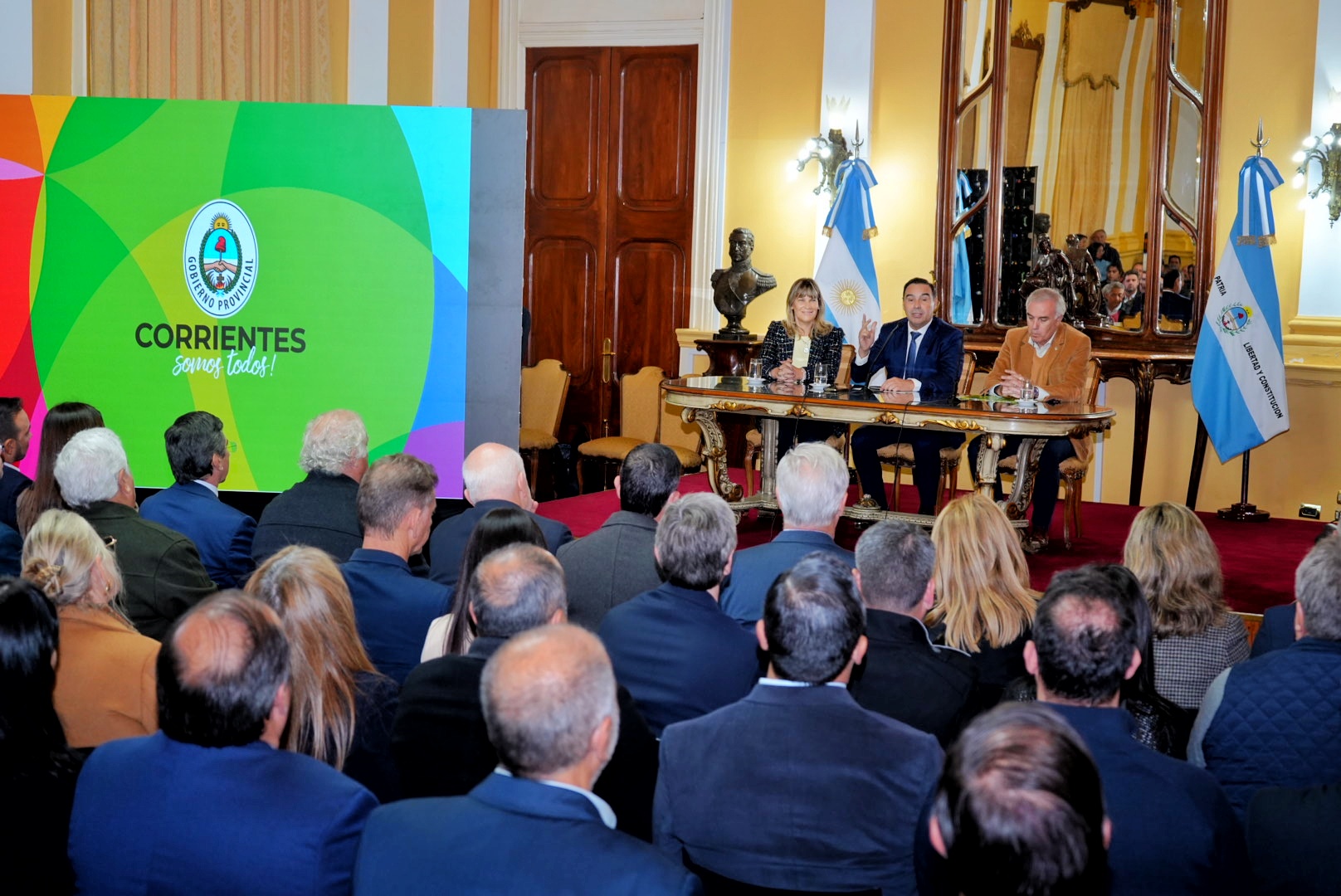 Acompañaron al Gobernador, los titulares de: Industria, Mariel Gabur; Producción, Claudio Anselmo; Desarrollo Social, Adán Gaya; Justicia, Juan José López Desimoni; Educación, Práxedes López; de Turismo, Alejandra Eliciri, el intendente de Ituzaingó, Juan Pablo Valdés y legisladores provinciales.