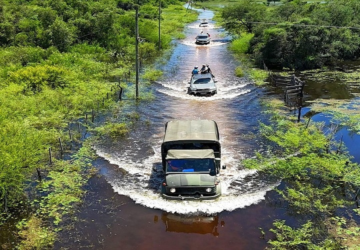 Se llega a estos lugares, a pesar de los anegamientos de los caminos rurales, con los móviles, unidades Unimog del Ejército, y en aquellos lugares que no se puede acceder por vía terrestre, con lanchas, embarcaciones de Prefectura Naval.