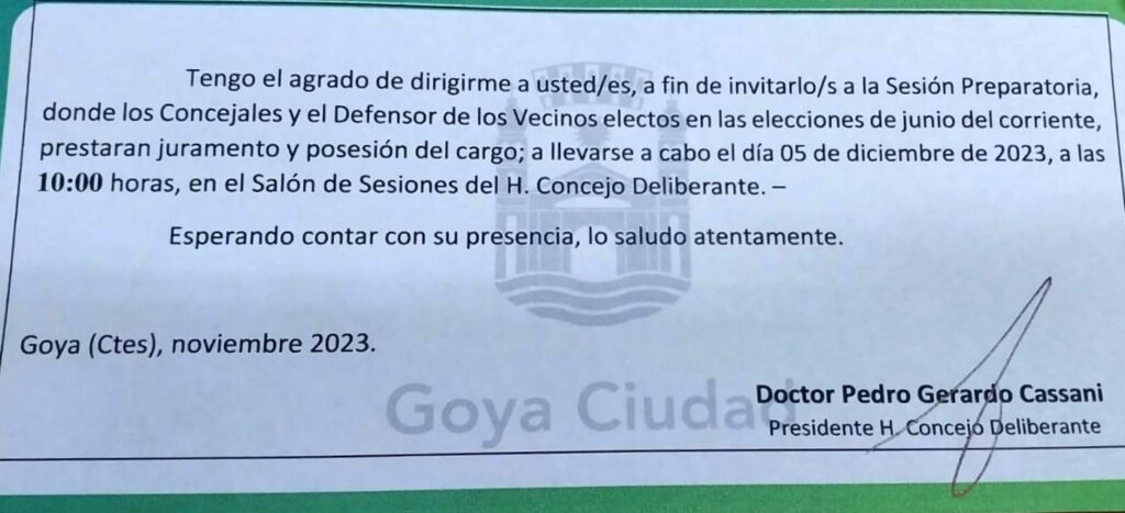 Invitación a periodistas del Presidente del Honorable Concejo Deliberante de Goya