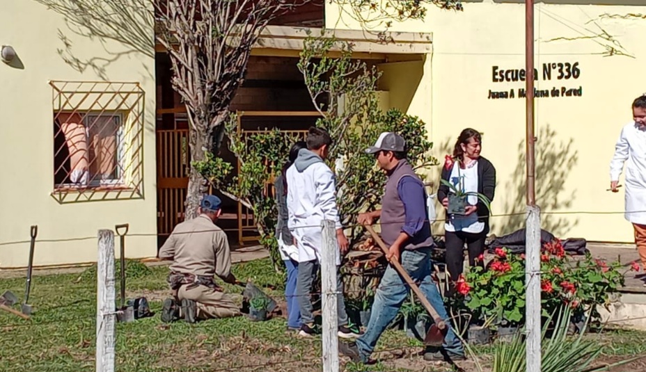 El equipo municipal desarrolló tareas de corte de pasto, plantación de árboles y ornamentación del jardín escolar. La iniciativa contó además con la colaboración activa de docentes y alumnos de la institución, quienes se sumaron con entusiasmo a la jornada, favoreciendo el trabajo conjunto y la concientización ambiental.