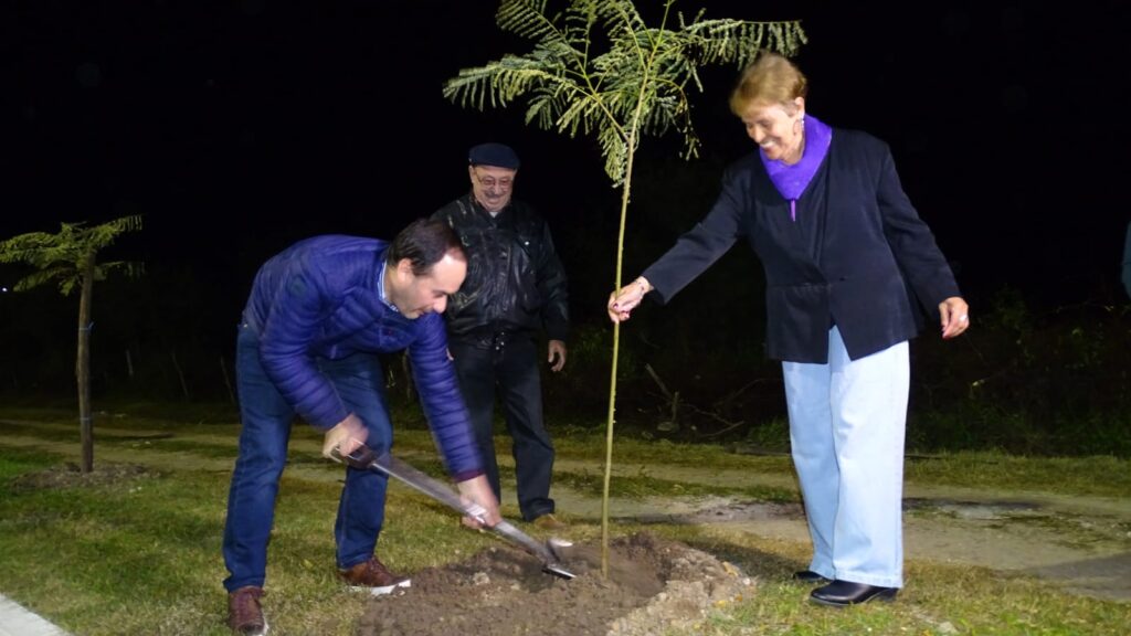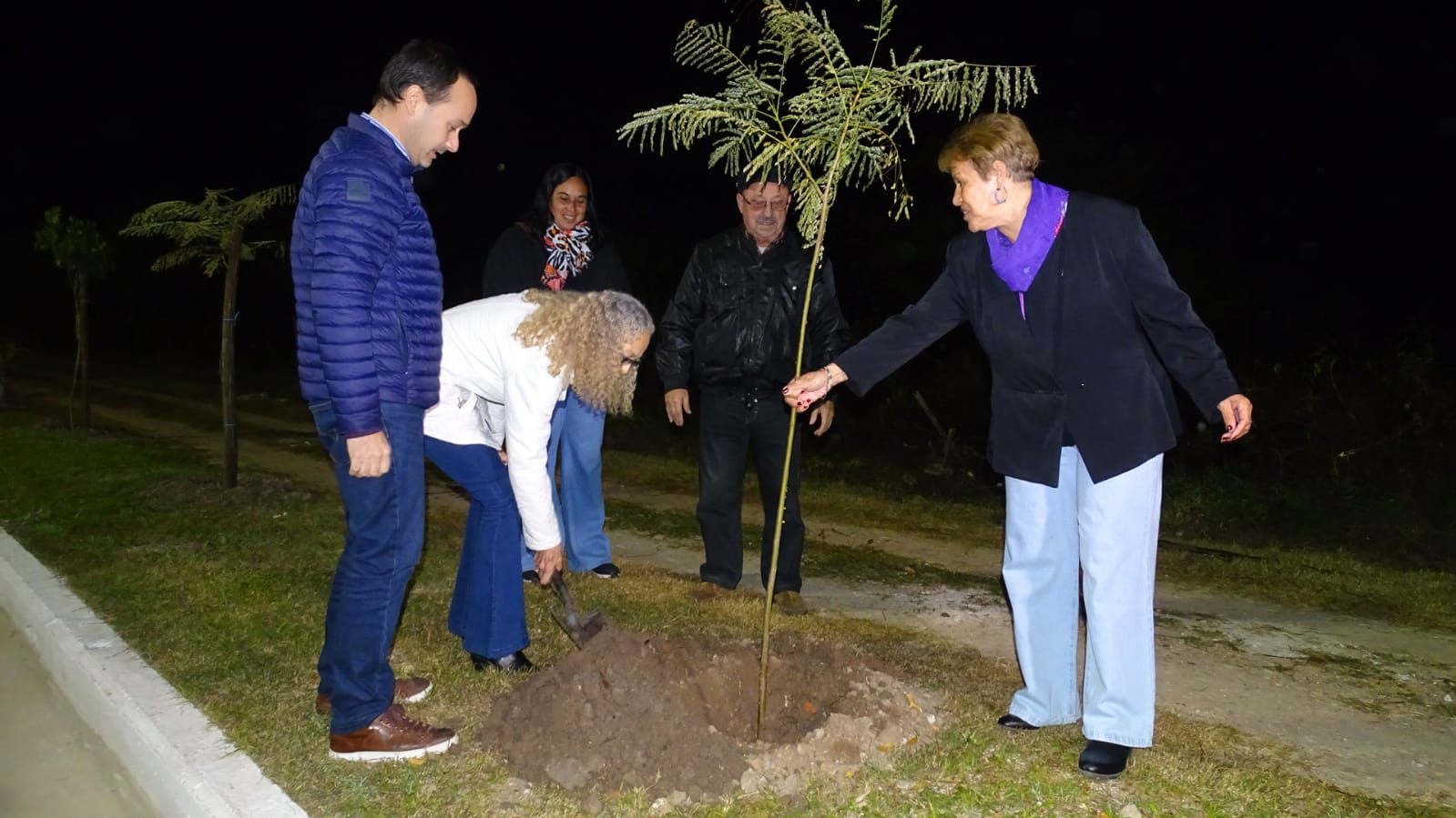 Para dejar inaugurada la obra del pavimento en calle Huaqui, en el barrio “San Martín”, el intendente, funcionarios, concejales, vecinos, presidentes barriales, procedieron al corte de cinta, y como un sello del cuidado de los espacios barriales plantaron juntos 19 especies de chivato que son incorporados al terreno del barrio.