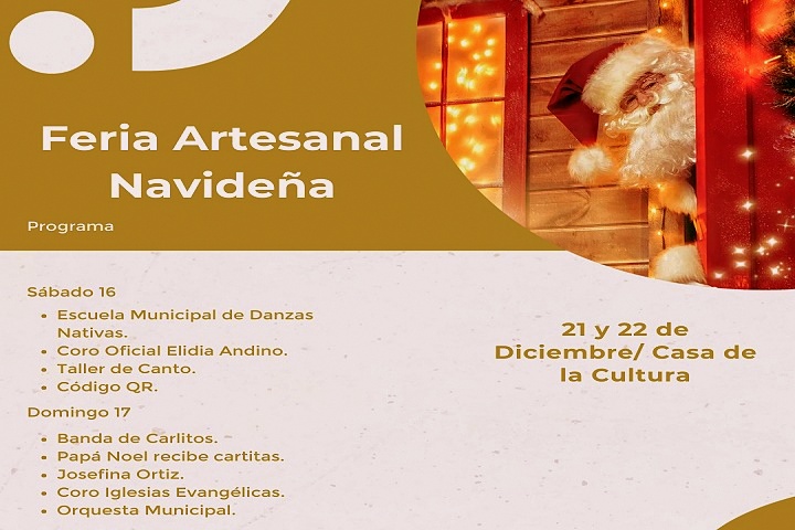 El programa de la Feria Artesanal Navideña se desarrollará los días jueves 21 y viernes 22 a partir de la hora 20 en Casa de la Cultura.