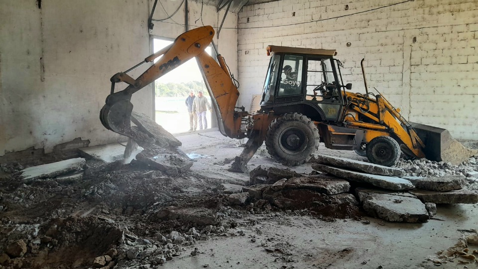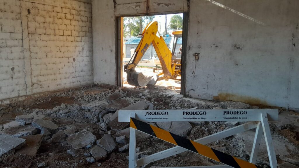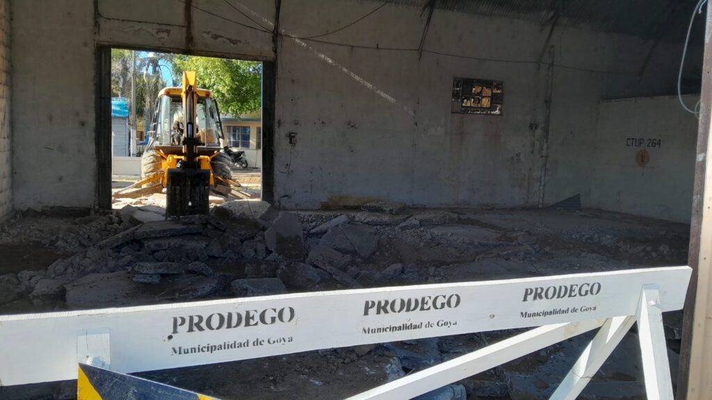 La Municipalidad de Goya avanza con los trabajos de reparación del piso interior del galpón ubicado en el sector recuperado por el municipio, en el muelle contigua a Prefectura. Las tareas son llevadas adelante de manera conjunta por PRODEGO y la Secretaría de Obras Públicas y Servicios, con el objetivo de recuperar este espacio clave del paseo costero.