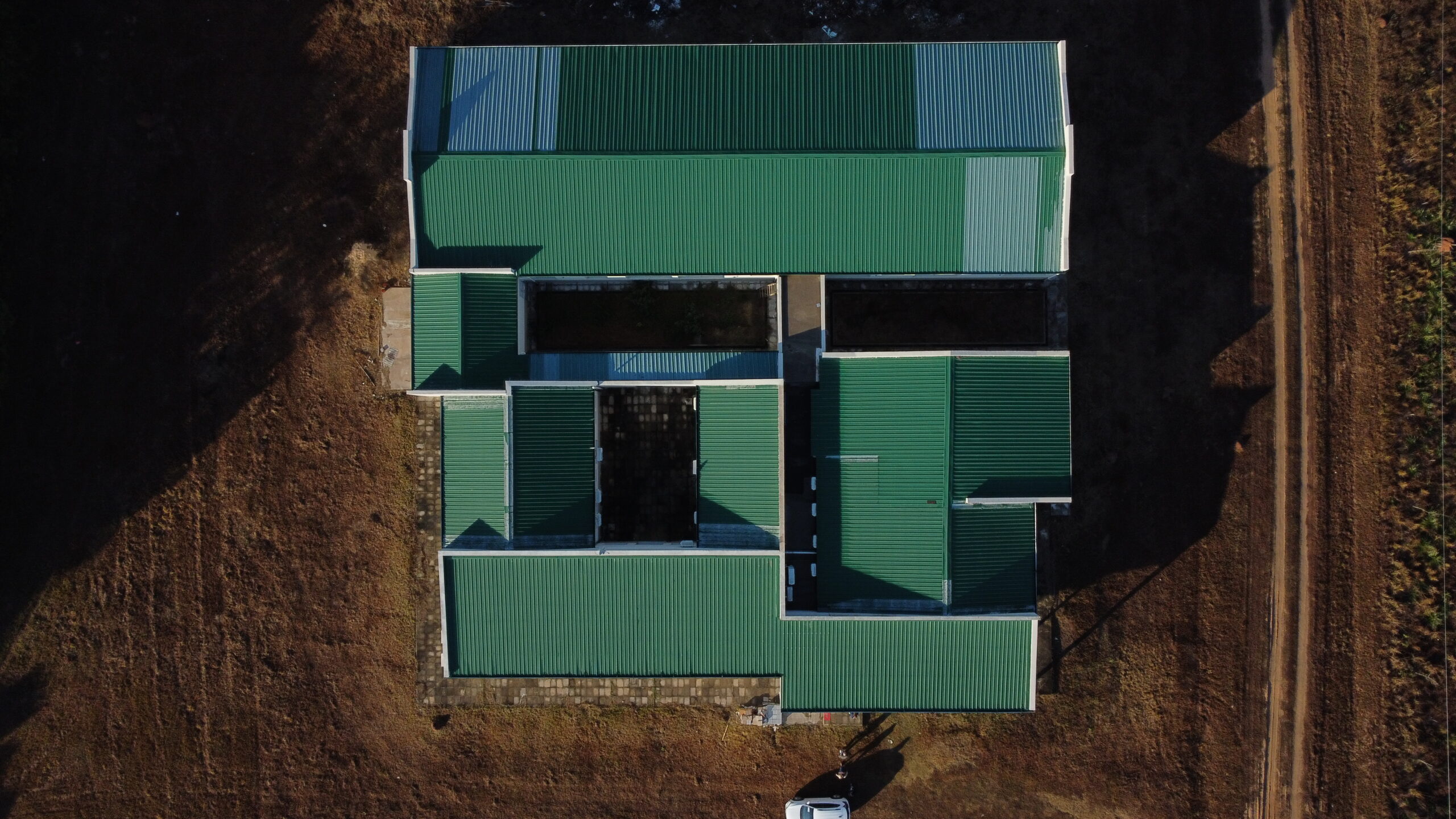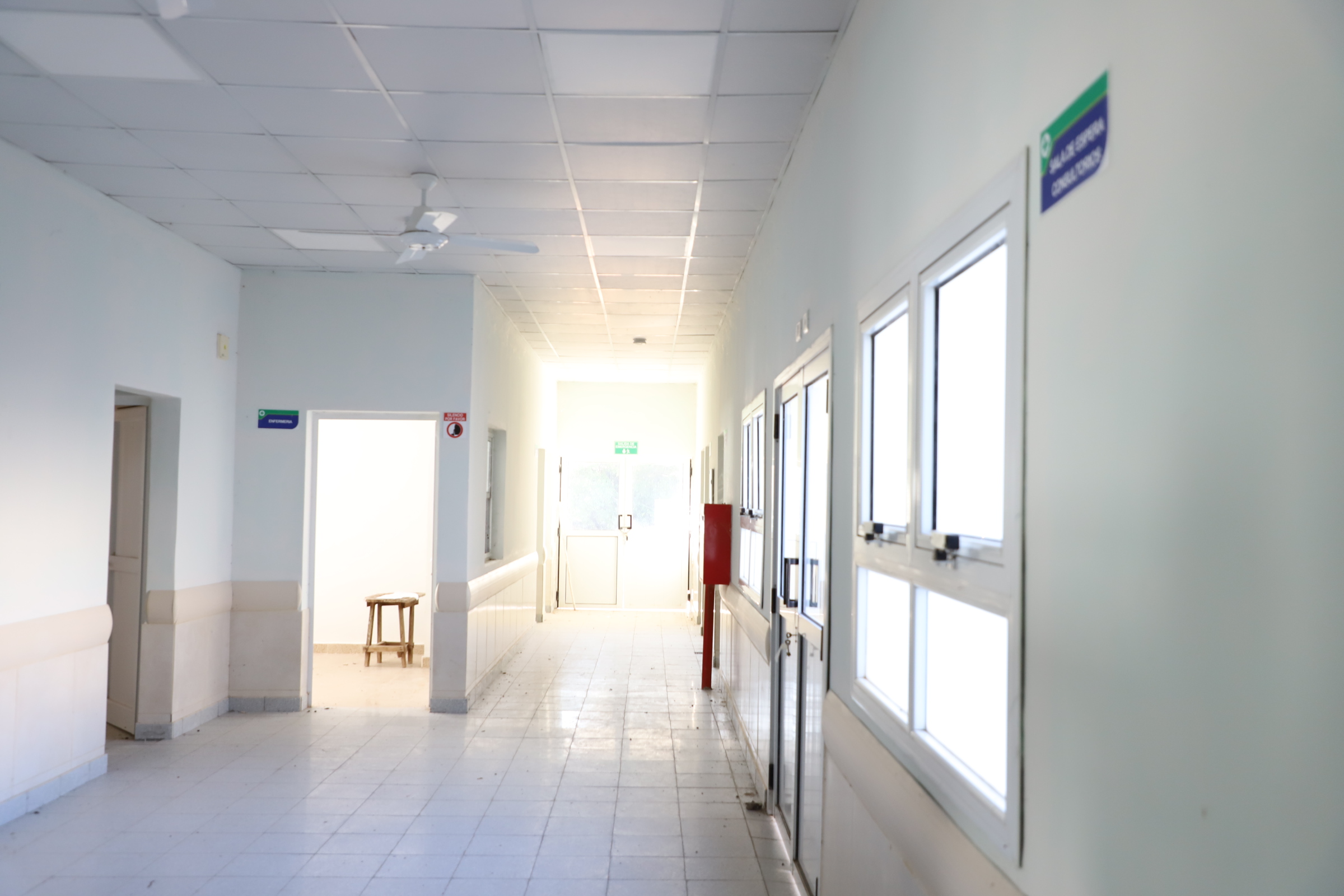 Además, un quirófano y una sala de partos, consultorios clínicos (2), de pediatría, kinesiología, odontología, admisión, administración, dirección, farmacia, laboratorio, acceso a emergencias y sala de curaciones.